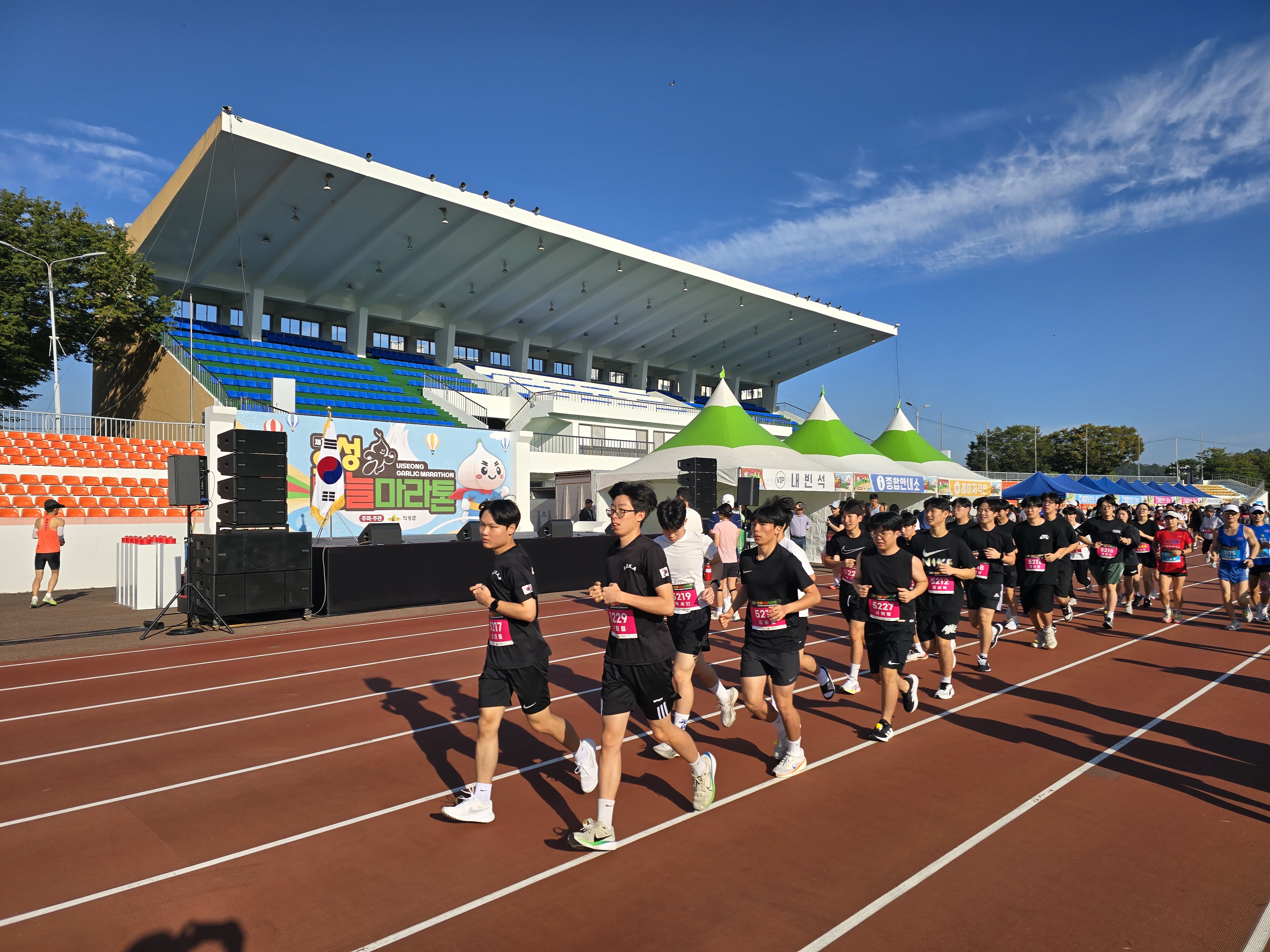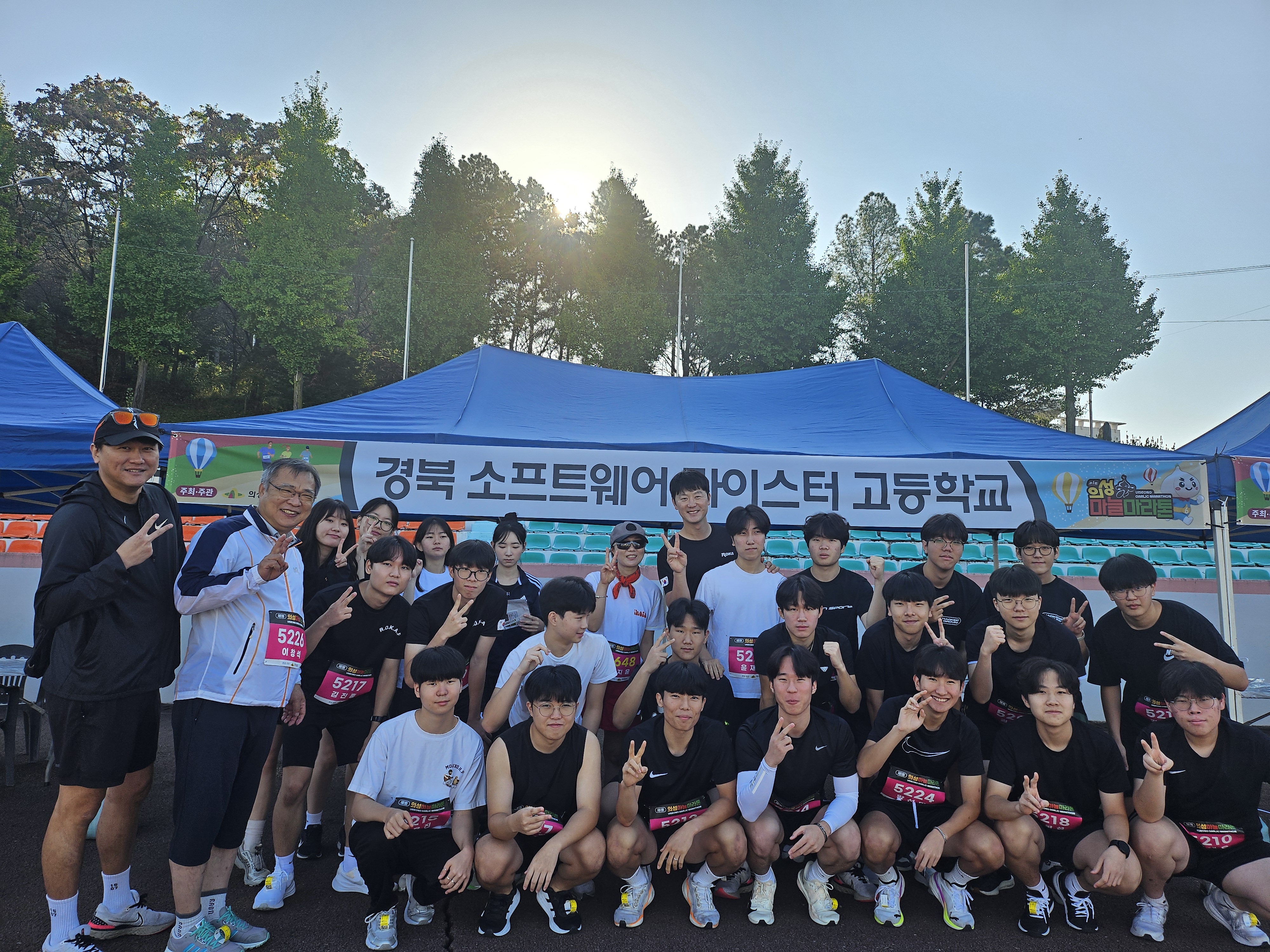 □ 경북소프트웨어마이스터고등학교(이하 경북소마고)는 지난 9월 27일(토) 의성종합운동장과 의성군 일원에서 열린 「제1회 의성 마늘 마라톤 대회」에 참석하였다. 이번 대회는 ‘마늘 향기 나는 건강한 축제’를 슬로건으로 세대를 아우르는 1,500여 명이 참여한 지역 축제로, 경북소마고 학생과 교직원 총 30명이 함께 달리며 축제의 의미를 더했다.