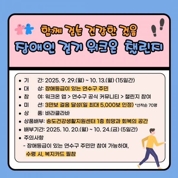 연수구, ‘함께 걷는 건강한 걸음 장애인 걷기 워크온 챌린지’ 운영