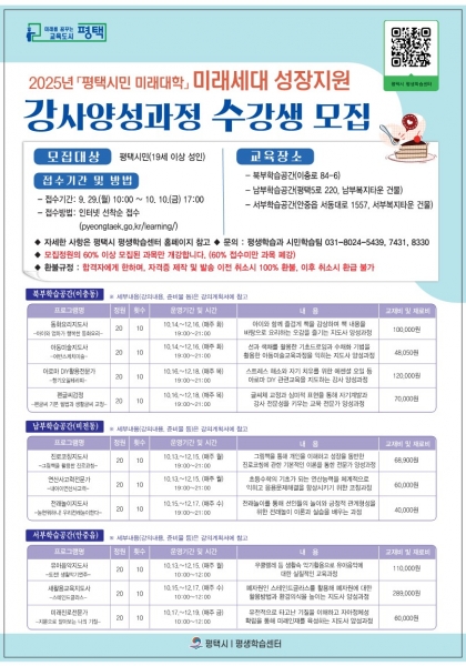 평택시, ‘2025년 평택시민 미래대학’ ‘미래세대 성장지원 강사’ 10주 과정 개설