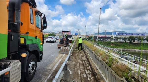 군은 도로 기능 유지와 교통사고 예방을 위해 △도로순찰 강화 △시설물 안전점검 △도로변 차량통행 장애요인 제거 △배수시설 및 길어깨 정비 △제초작업 및 환경정비 △포트홀 보수 △차선·횡단보도·과속방지턱 도색 작업 등을 집중적으로 실시했다.