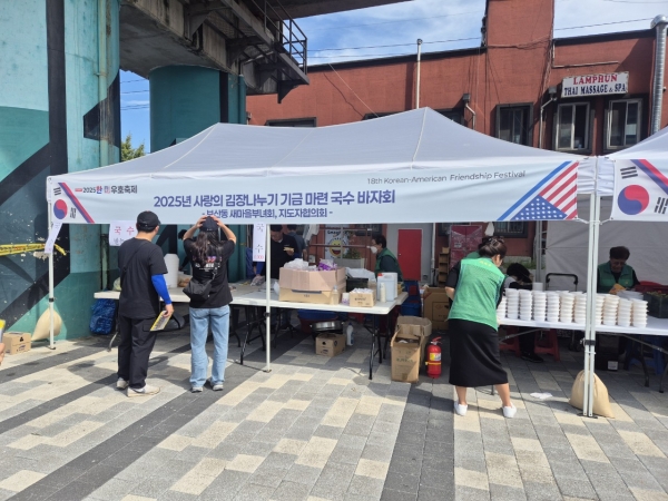 [금요저널] 동두천시 보산동 새마을남녀지도자협의회는 9월 27일 2025년 한미우호축제가 열린 보산동 한미우호의 광장에서 ‘사랑의 김장나누기’ 기금 마련을 위한 국수바자회를 성황리에 개최했다.