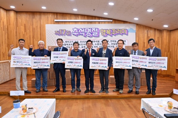 이번 ‘추석 명절 행복 꾸러미’는 양평군축산발전협의회, 양평군기업인협의회, 양평축산농협, 대한불교조계종사회복지재단 등 지역 각 단체들의 따뜻한 관심과 마음이 모여 12개 읍·면 1,000가구에 전달됐다.
