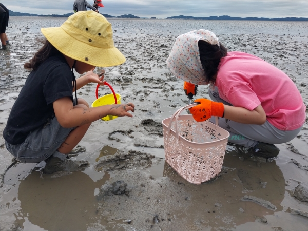 갯벌 생태에 대한 사전 교육 후 조개잡기 체험 활동을 진행해, 아동과 가족이 함께 살아 있는 갯벌 생물을 관찰하며 자연에 대한 이해와 학습 효과를 높였다.