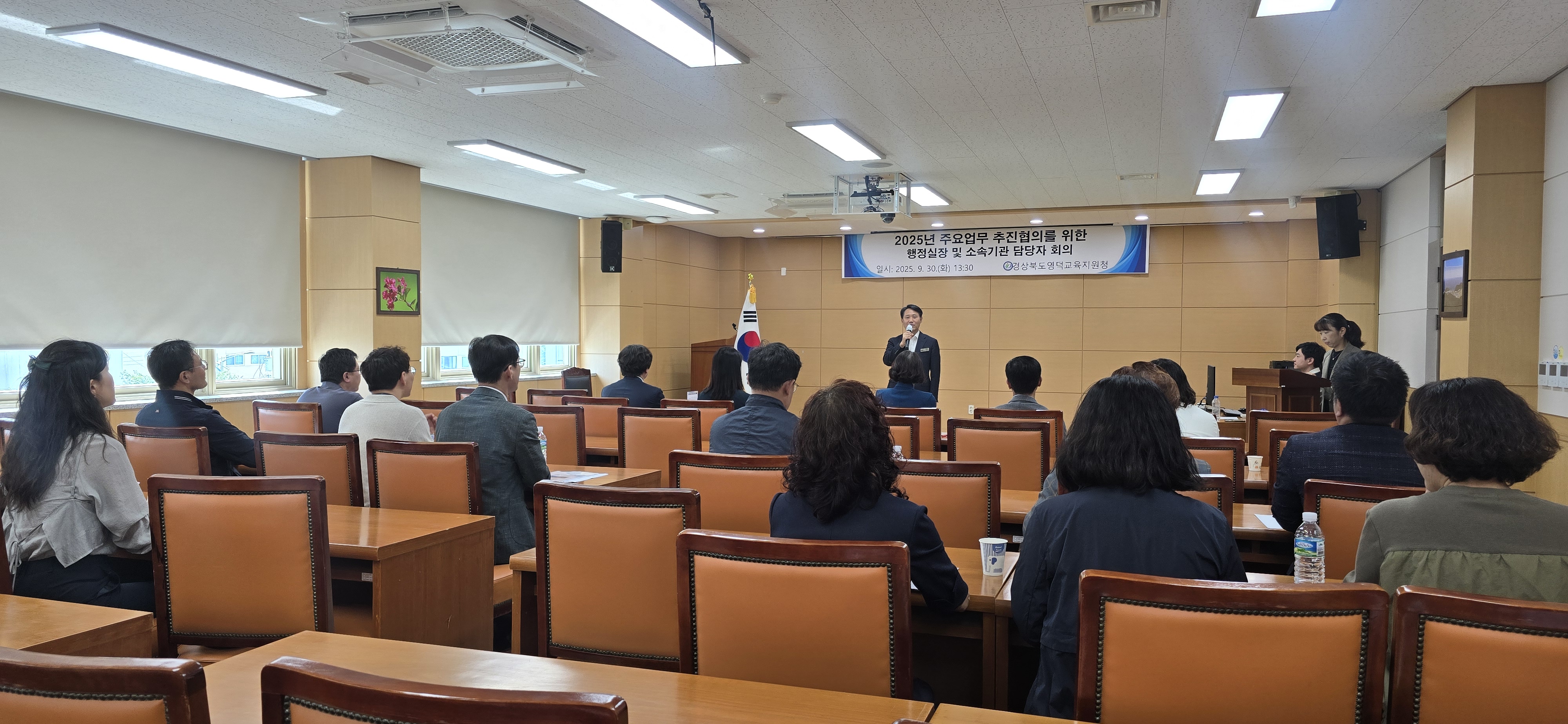 □ 영덕교육지원청(교육장 이성호)은 9월 30일(화) 관내 초·중·고등학교 및 소속기관 행정실장 17명을 대상으로「2025년 하반기 주요 업무 추진을 위한 행정실장 회의」를 개최하였다.