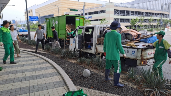 수원시, 수원도시공사, 수원다시서기노숙인종합지원센터 관계자 등은 무단 적치물을 철거하고 광장과 환승센터 주변을 물청소했다.