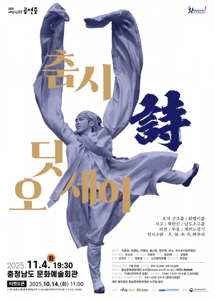 충청남도 문화예술회관 기획공연으로 선보이는 이번 작품은 예술경영지원센터 ‘2025 공연예술 지역 유통지원 사업’ 선정작으로 충남도민에게 다양한 순수예술 향유 기회를 제공하는 것을 목적으로 개최한다.