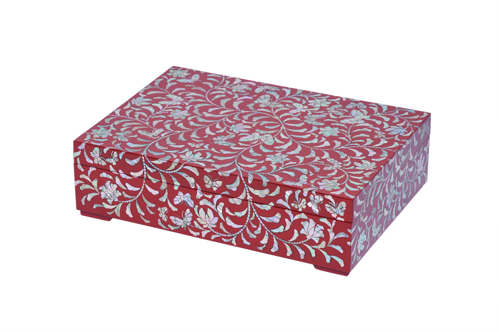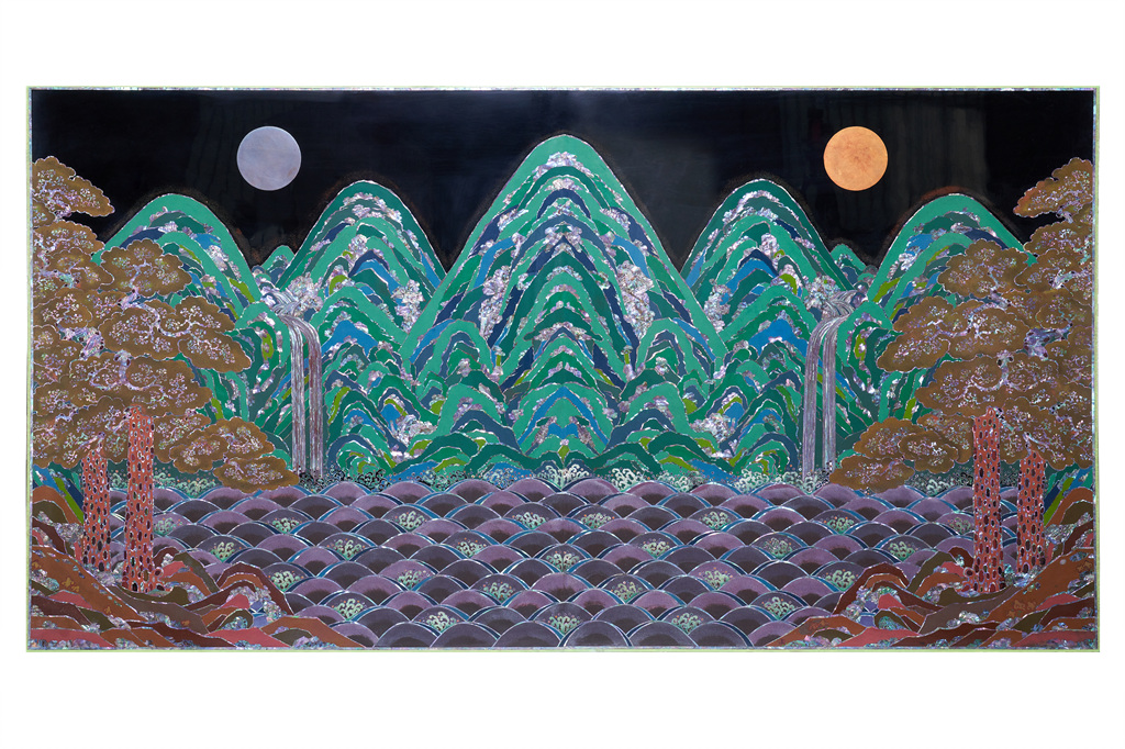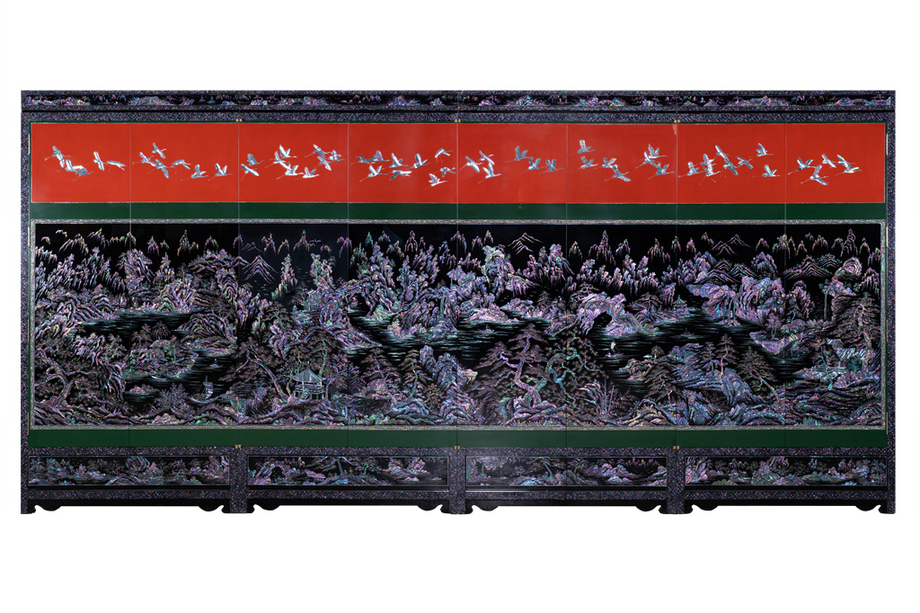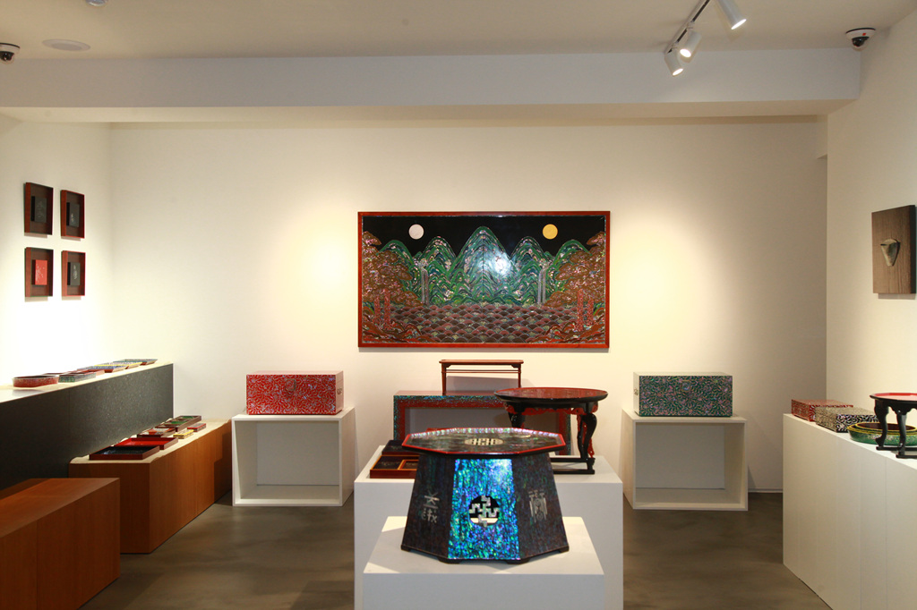 나전칠기는 전복, 진주조개, 소라 등의 껍질을 얇게 잘라서 나무나 옻칠한 바탕위에 붙이고 그 위에 다시 옻칠을 입혀 표면을 매끄럽게 만든 후 갈아내는 방식으로 작품이 완성되는데 총 165과정을 거쳐야 비로소 완성되는 귀한 공예품이다. 이번 전시의 대표 작품은 아름다운 산수가 천연의 빛으로 발산되는 화려한 자개농과 일월오봉도로 나전칠기의 진수를 만나볼 수 있는 기회를 제공하고 있다.