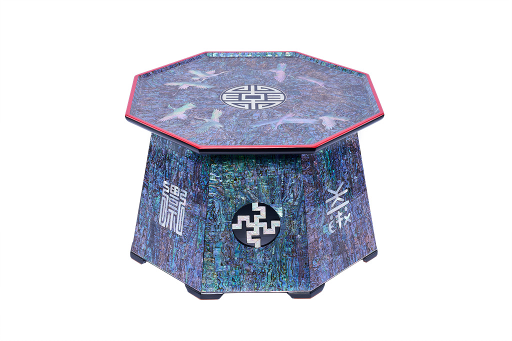 실생활에 사용할 수 있는 가구들이지만 하나의 완벽한 예술품처럼 자개에서 뿜어져 나오는 오묘하고 영롱한 빛이 시선을 머물게 하며, 둥근 상판 위에 촘촘히 박힌 자개 문양, 중심부의 화려한 원형 장식 등은 화려함의 극치를 보여주고 있다. 가까이서 보면 작은 자개의 조각들이 빛의 각도에 따라 무지갯빛으로 반짝이며 끊임없이 변주되는 느낌을 주는데 이 반짝임이 바로 나전칠기의 생명력이자 매력이다.
