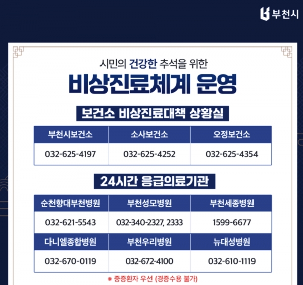 부천시, 추석 연휴 비상진료체계 운영