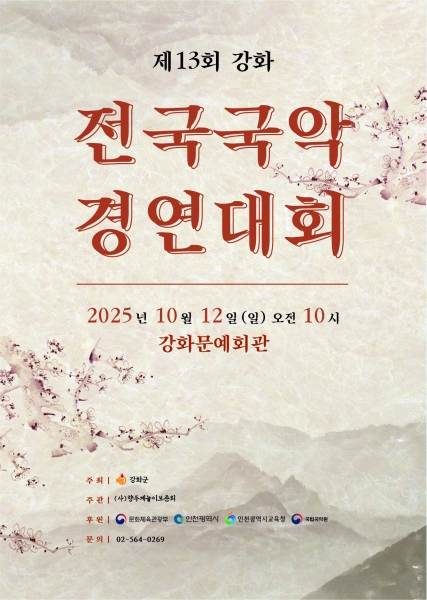 [금요저널] 강화군은 오는 10월 12일 강화문예회관에서 ‘제13회 강화 전국 국악경연대회’를 개최한다고 밝혔다.