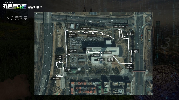 게임 내용은 시청 너른못 광장에는 있는 ‘햇살 담은 나무 조형물’, 시청 공원 내 공기정화 블록, 돌문 조형물, 정원 유리판 등에 숨겨진 미션 단어로 환경 관련 정답 찾아내기, 성남자원순환가게 시청점에서 분리배출 등의 단서로 빈칸에 핵심 단어 입력하기 등이다.