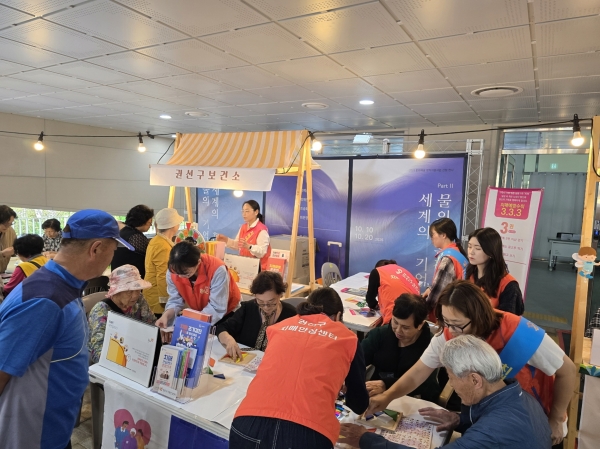 치매안심센터 부스를 운영하며 홍보 리플렛과 물품을 제공하고 치매 조기검진 방법과 예방 수칙 ‘3·3·3’을 안내했다.