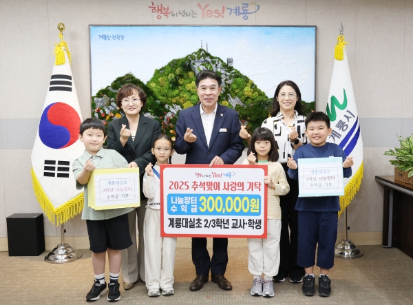 이응우 시장은 “계룡대실초 학생들과 교직원이 보여준 배려와 사랑에 깊이 감사드린다”며 “기탁해 주신 성금은 우리 지역의 어려운 이웃들에게 소중히 전달하겠다”고 전했다.