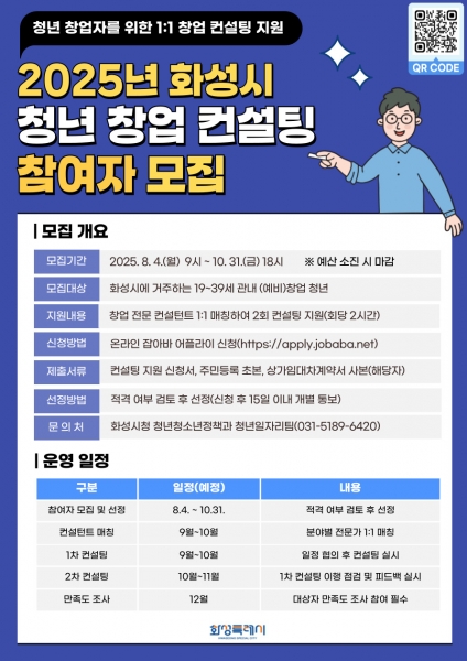 화성특례시, ‘2025년 청년 창업 컨설팅 지원사업’ 참여자 모집
