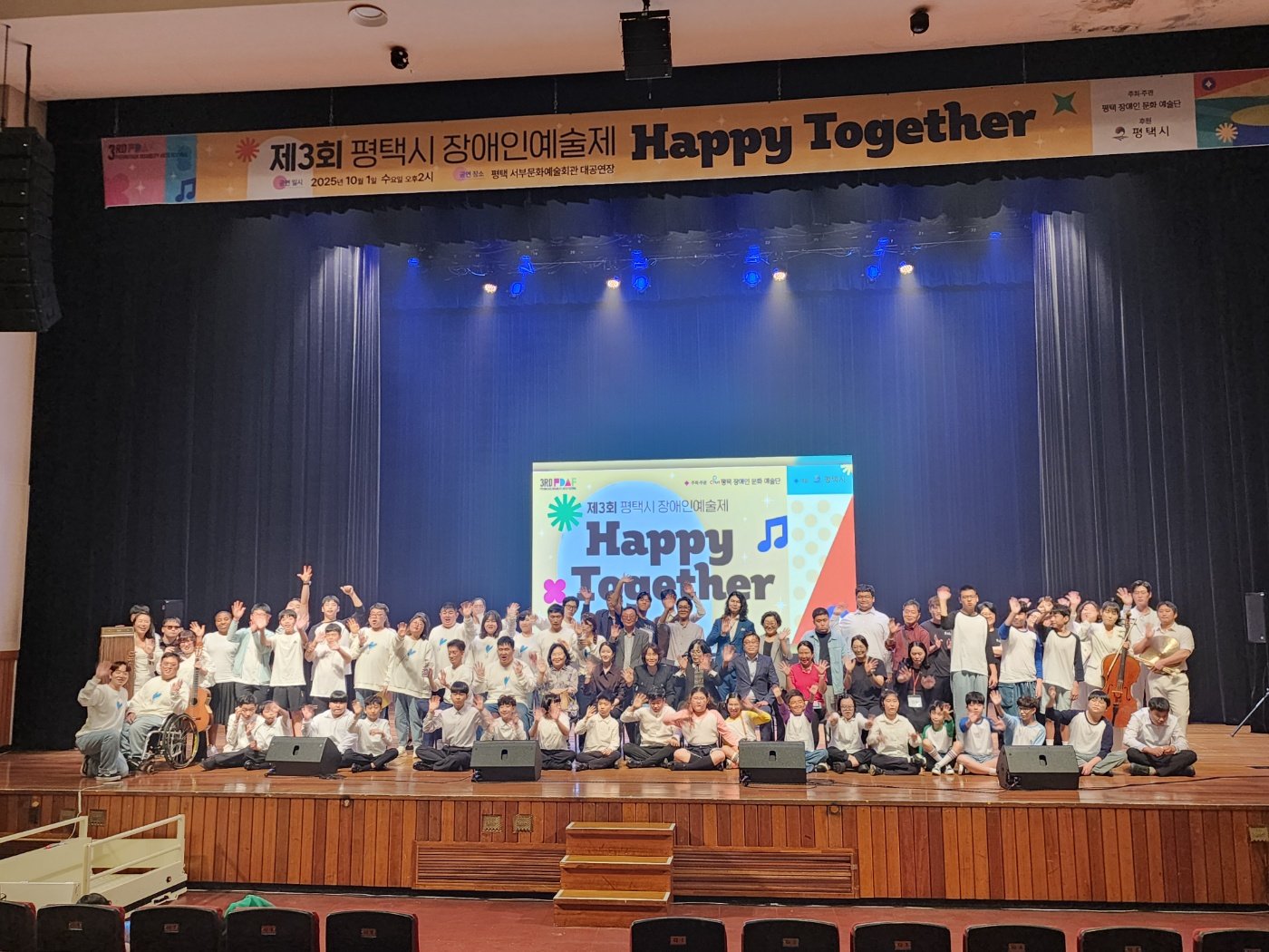 [금요저널] 평택시(시장 정장선)는 지난 1일 평택서부문화예술회관에서 제3회 장애인예술제를 성황리에 개최했다. 이번 예술제는 문화로 하나 되는 행복한 동행(Happy Together)을 주제로, 장애인과 일반인이 함께 어울리며 예술을 통해 소통하는 화합의 장으로 마련됐다.