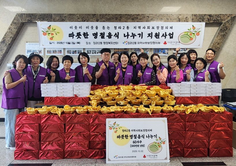 [금요저널] 인천 서구 청라2동 행정복지센터(동장 김남효)는 지난 2일, 지역사회보장협의체(공동위원장 김기완)가 추석 명절을 맞아 관내 독거 어르신 등 취약계층 60가구에 명절 음식을 전달했다고 10일 밝혔다.