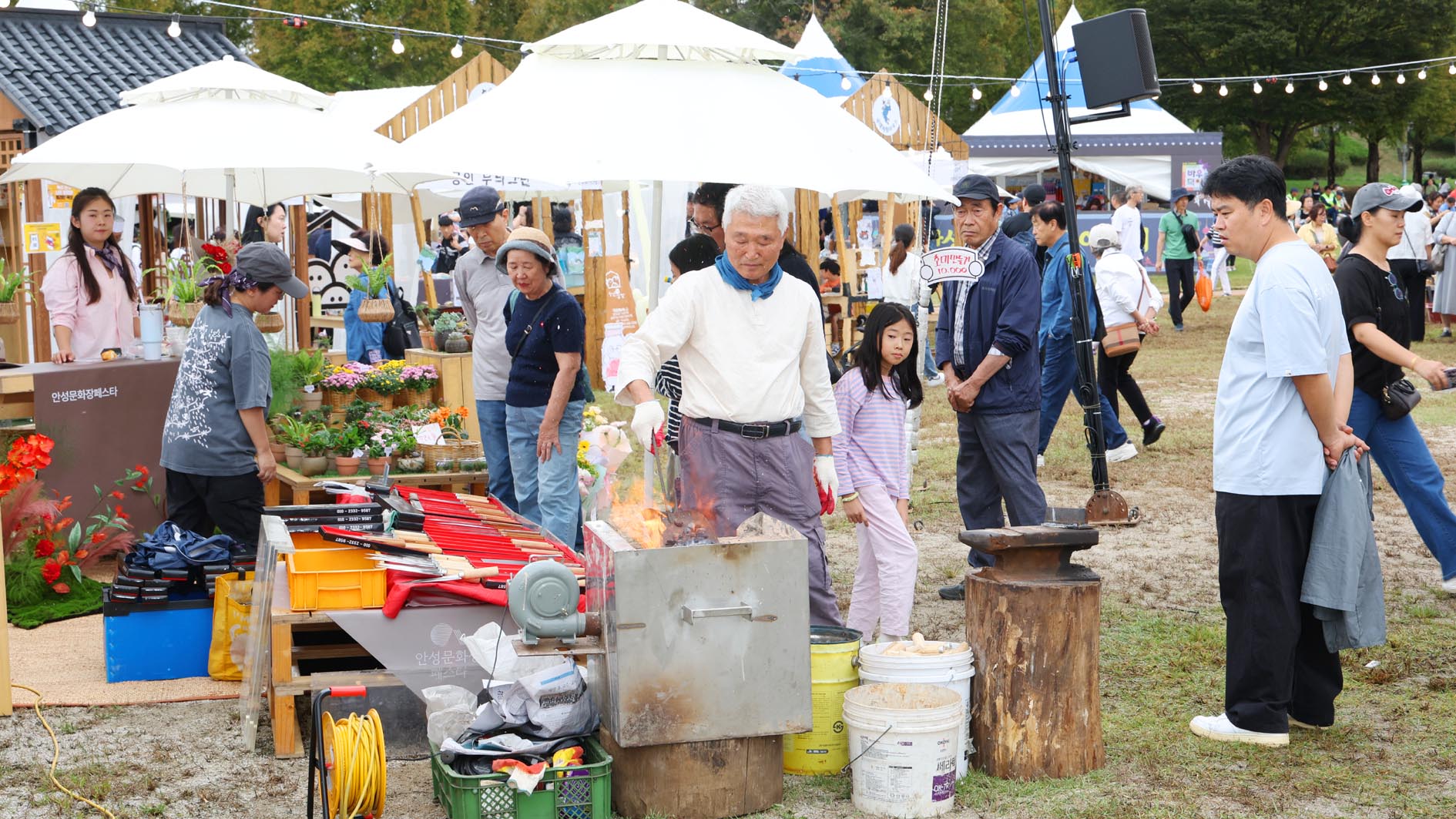축제장 메인무대 앞에 조성된 문화장 페스타 공간은 19명의 문화 장인이 참여해 전시, 시연, 판매 등을 겸한 ▶안성문화장인전, 다양한 테마 체험을 즐길 수 있는 ▶안성문화상단전, 청년 공예가들과 함께하는 ▶공예체험 하우스, 이색 공예품을 만날 수 있는 ▶힙크래프트 편집숍 등이 마련됐다.