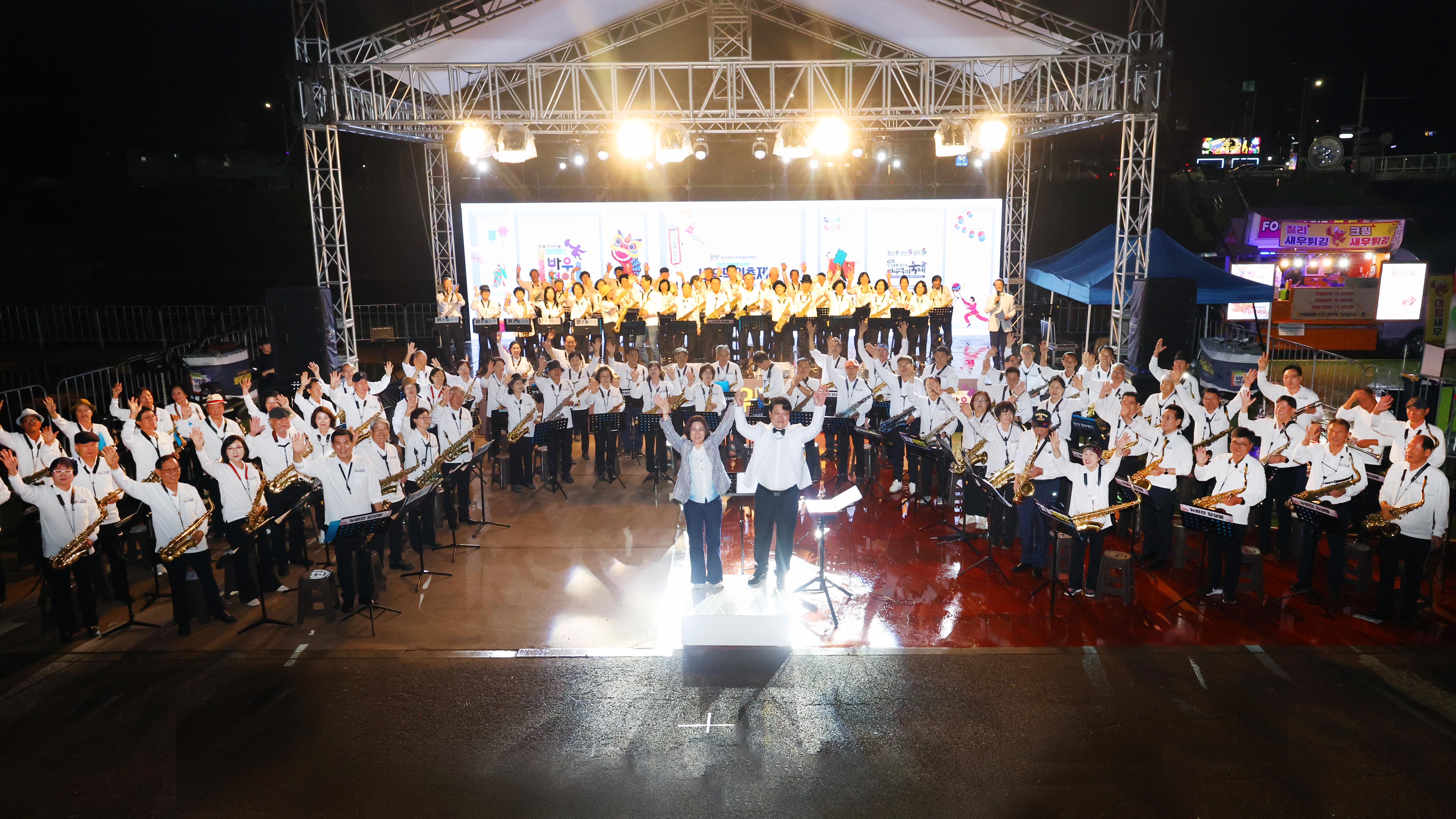 안성천 무대에서 열린 공연은 지역 내에서 활발히 활동 중인 시민동아리 및 자치동아리 등 9개 단체가 참여해 다양한 색소폰 연주 무대를 꾸몄다. 특히, 100인의 연주자가 함께하는 대규모 색소폰 합주는 축제의 하이라이트로, 관람객들에게 깊은 울림과 감동을 전했다.