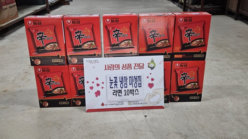 눈꽃 냉삼 미성집, 상패동에 라면 10박스 후원 (사진제공=동두천)