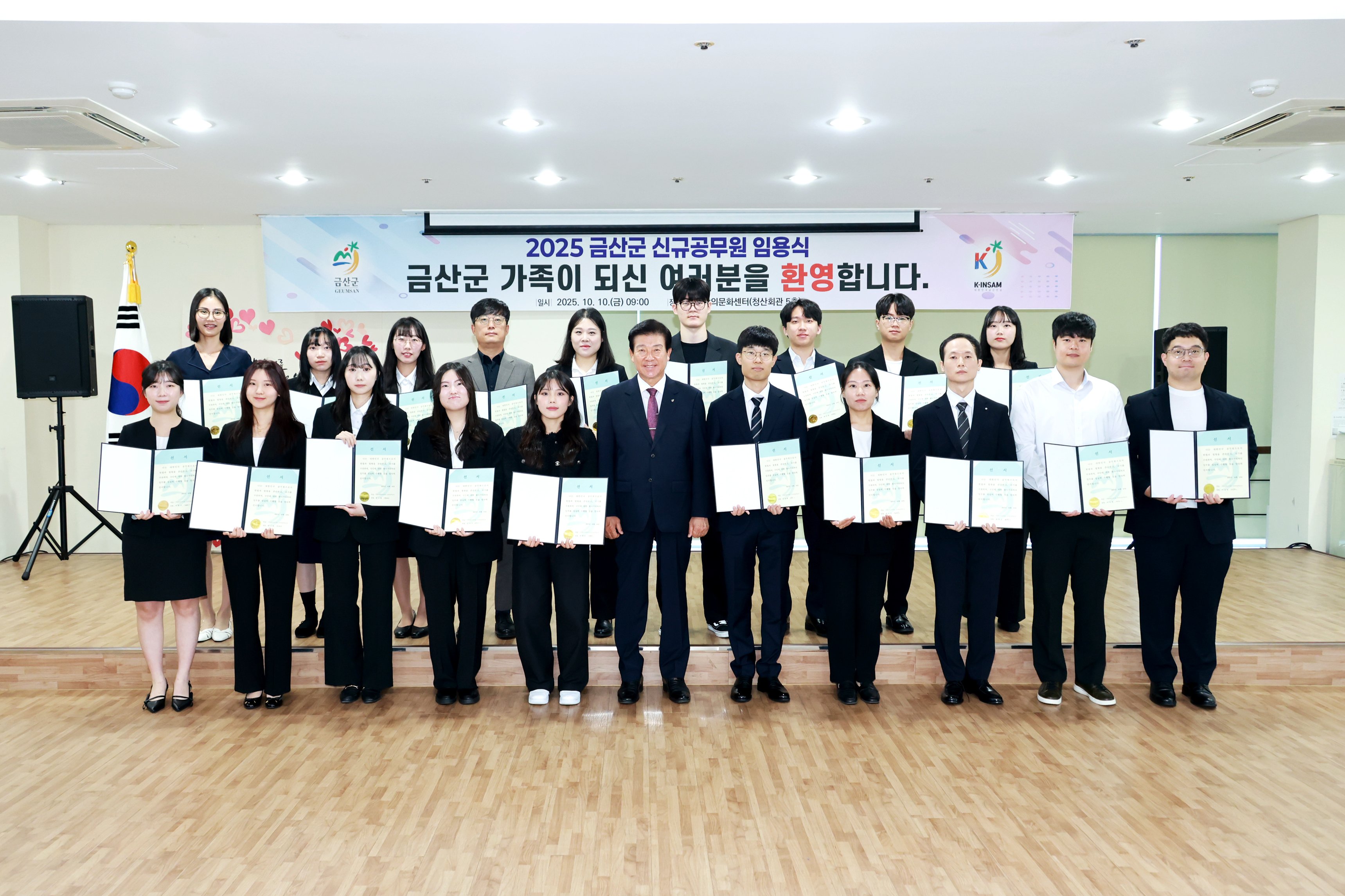 금산군은 지난 10일 금산읍 청산회관에서 2025년도 신규공무원 임용장 수여식을 개최했다.
