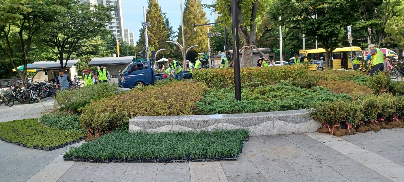 이에 일산서구는 광장 원형화단 내 느티나무, 눈향나무 등과 함께, 그늘과 토양 적응력이 높은 영산홍·맥문동·꽃잔디 등 총 4,350본의 야생화를 새로 식재했다.