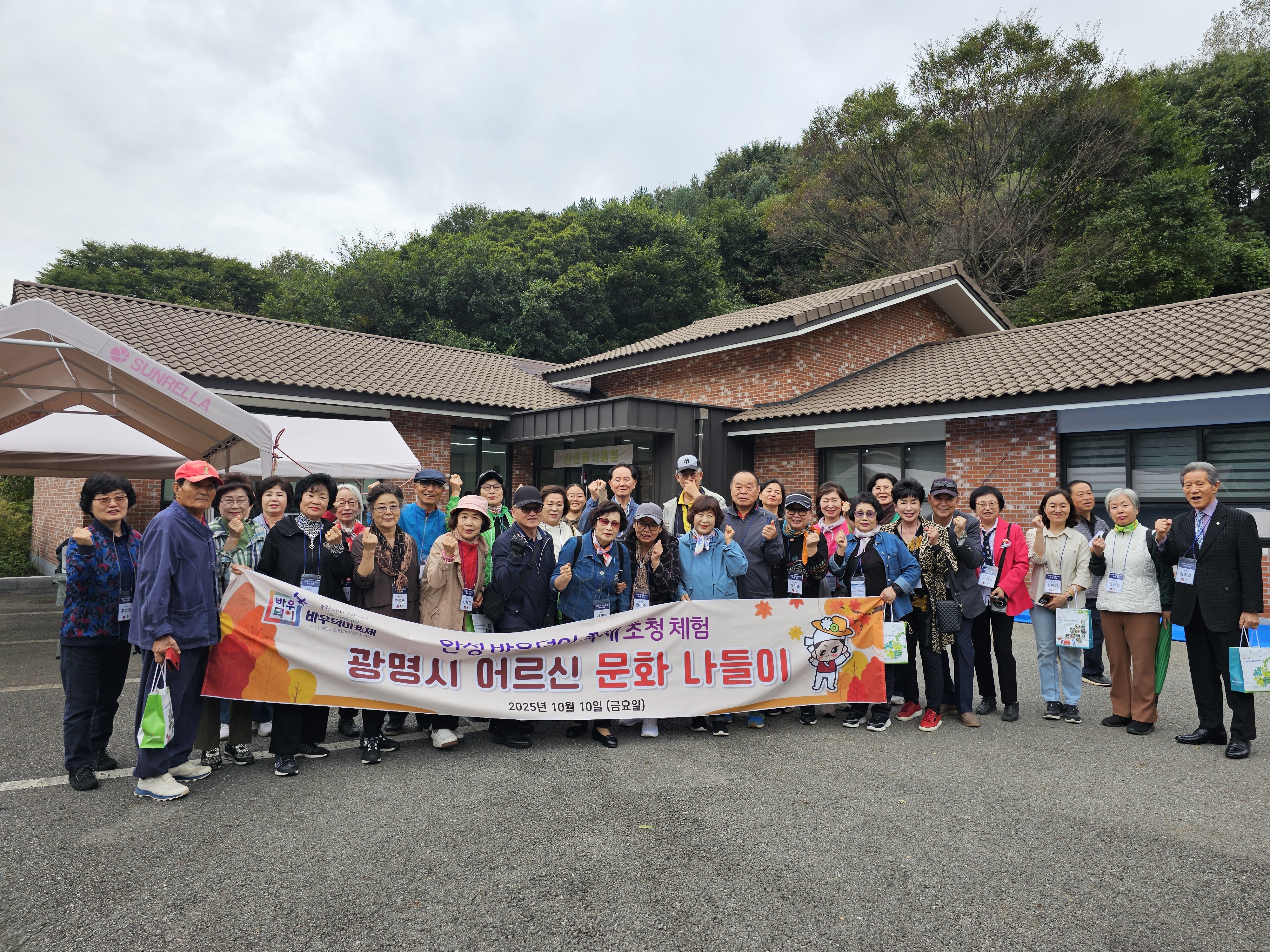 광명시 어르신들은 안성맞춤랜드에서 열린 바우덕이 축제장에서 남사당 바우덕이 공연, 전통놀이 체험, 지역 특산물 시식 등 다양한 프로그램에 참여했다.