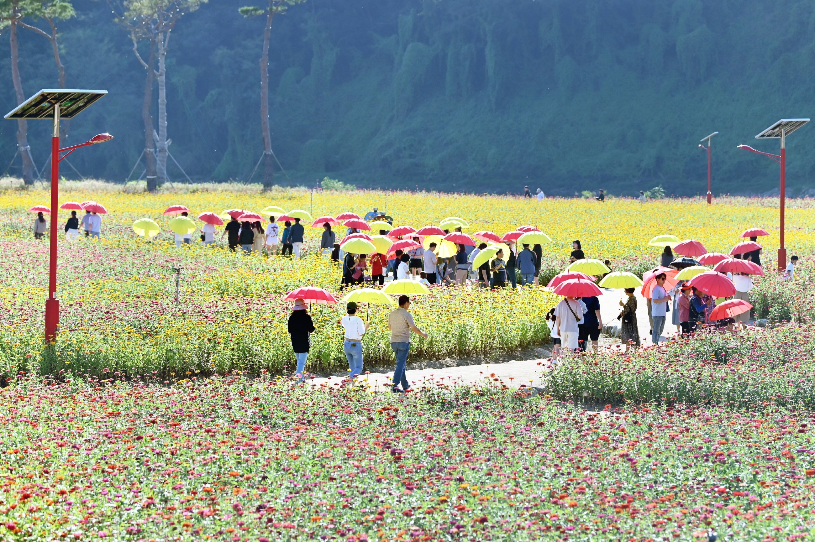 [금요저널] 파천면 신기리 일대에 조성된 전국 최대 규모의 백일홍 화원 ‘산소카페 청송정원’ 이 지역 도시브랜드 ‘산소카페 청송군’의 이미지를 대표하는 힐링 공간으로 자리매김하며 군민과 관광객들로부터 큰 호응을 얻고 있다.