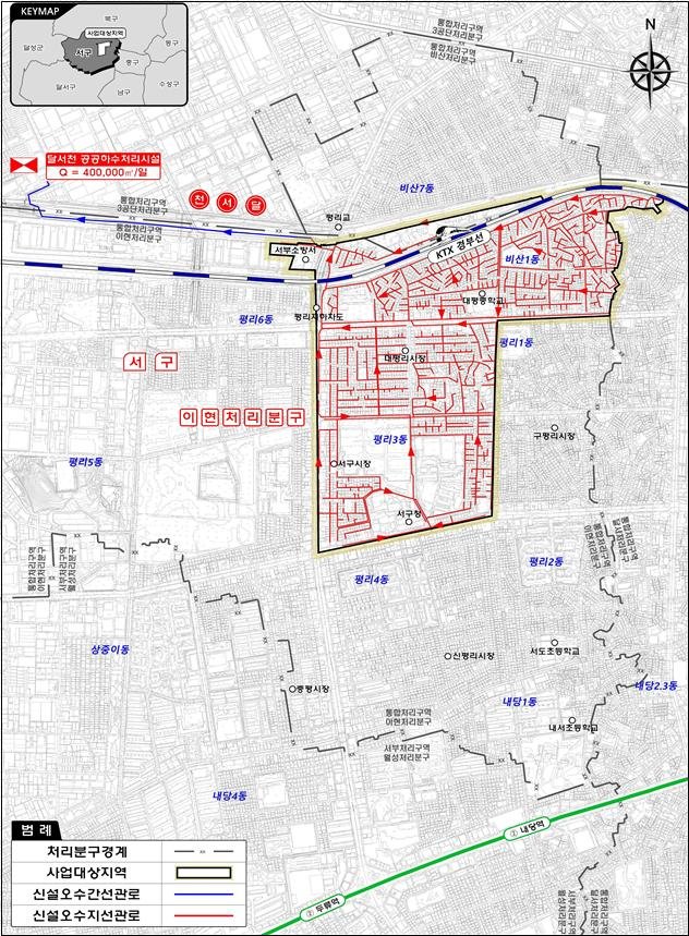 ‘달서천 1구역 하수관로정비 임대형 민간투자사업(BTL)’은 서구 비산- 평리동 일원에 총사업비 861억원을 투입해 37㎞의 오수관로 신설과 3,709가구를 대상으로 배수 설비 정비를 추진하는 대규모 민간투자사업이다.