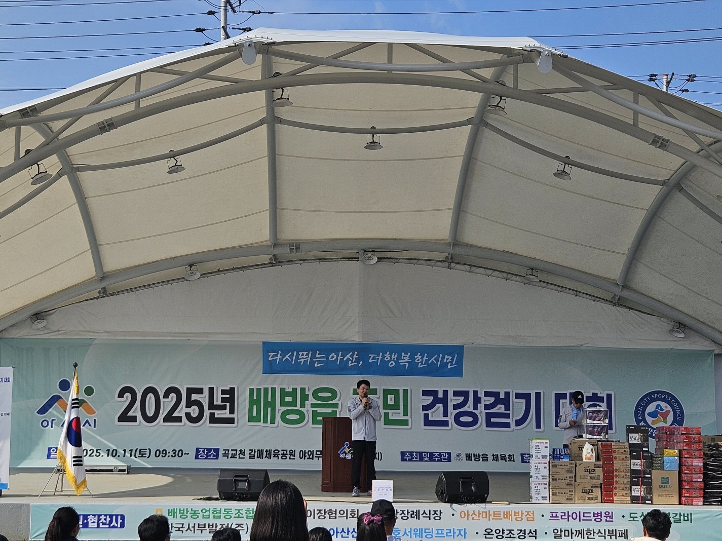[금요저널] 배방읍 체육회(회장 김세환)가 지난 11일 배방읍 곡교천 야외무대에서 개최한 ‘2025년 배방읍 주민 건강 걷기대회’ 가 성황리에 마무리됐다고 밝혔다.