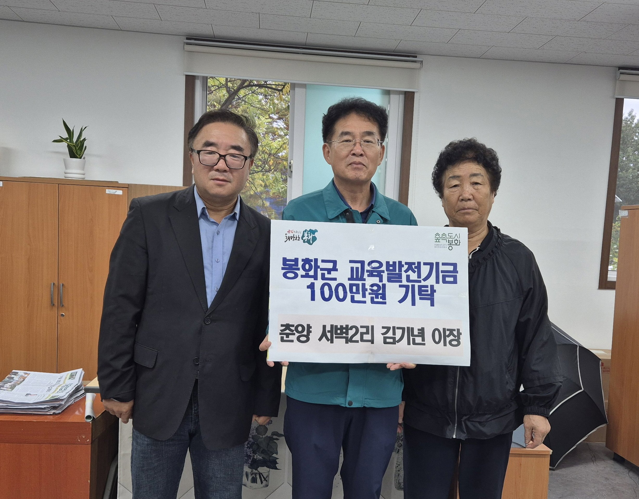 [금요저널] 춘양면 서벽2리 김기년 이장은 지역 인재 육성과 교육환경 개선을 위한 뜻을 모아 지난 13일 봉화군 교육발전기금으로 100만원을 기탁했다.