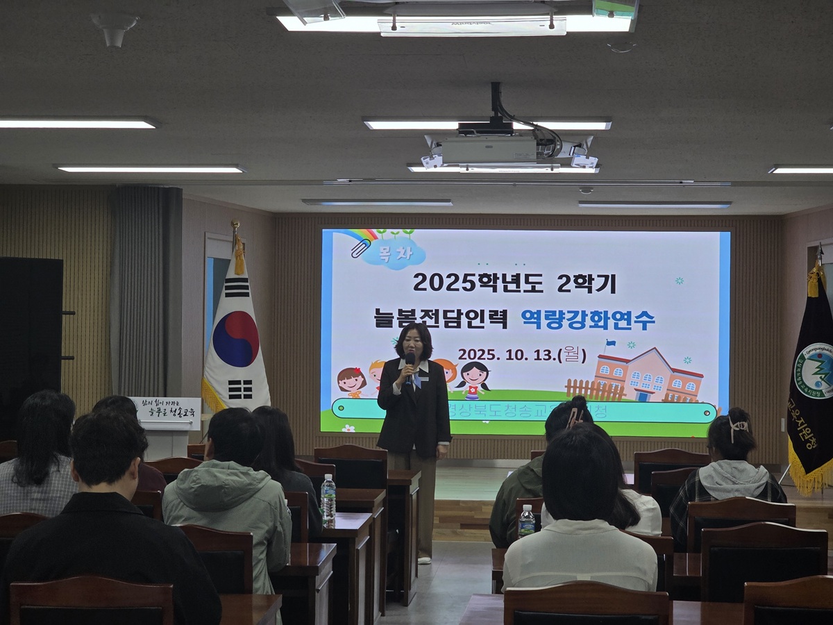 ▢ 경상북도청송교육지원청(교육장 남정일)은 10월 13일(월) 14시 30 분 2025학년도 2학기 늘봄전담인력을 대상으로 역량강화연수를 개최했다.
