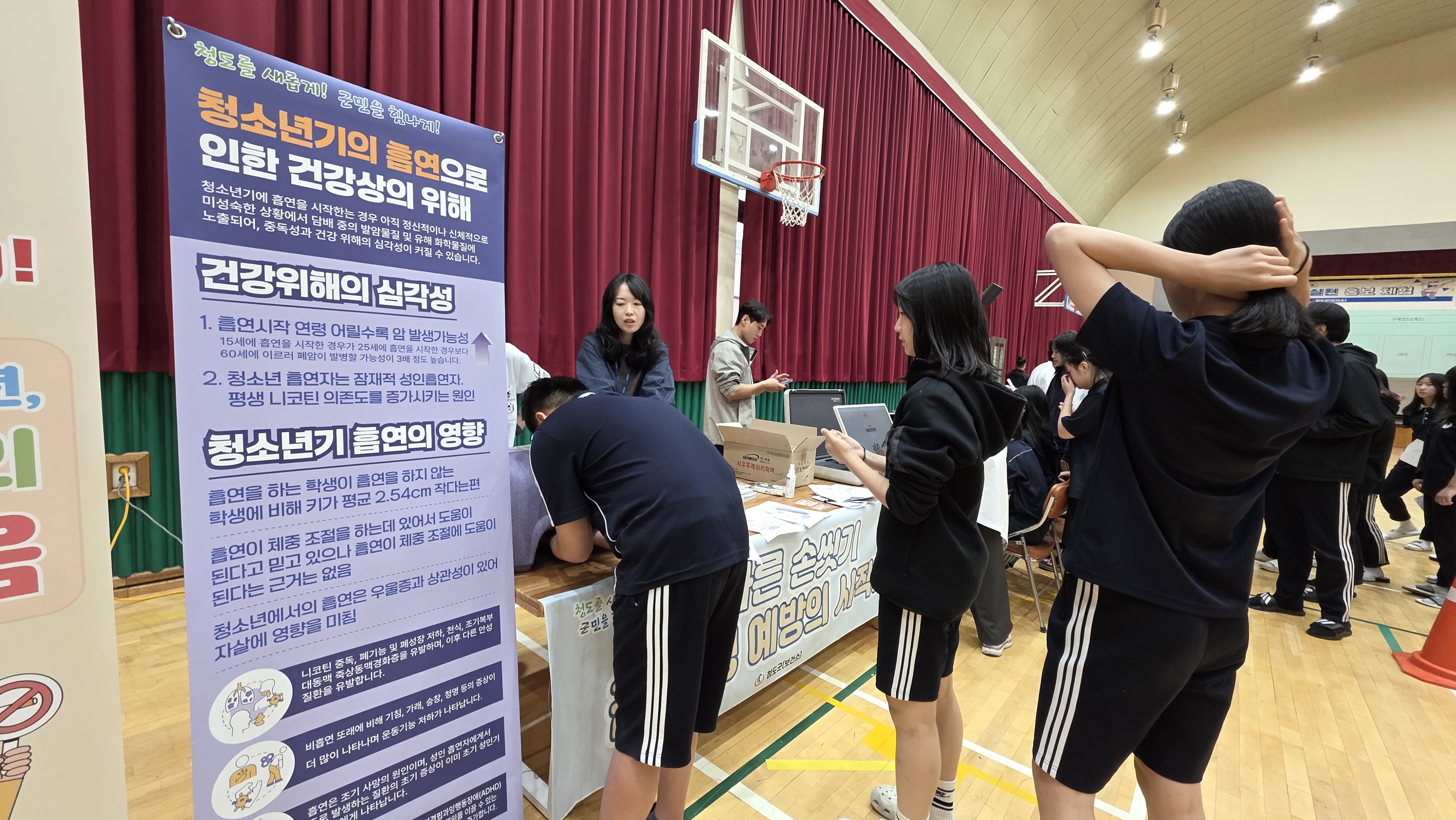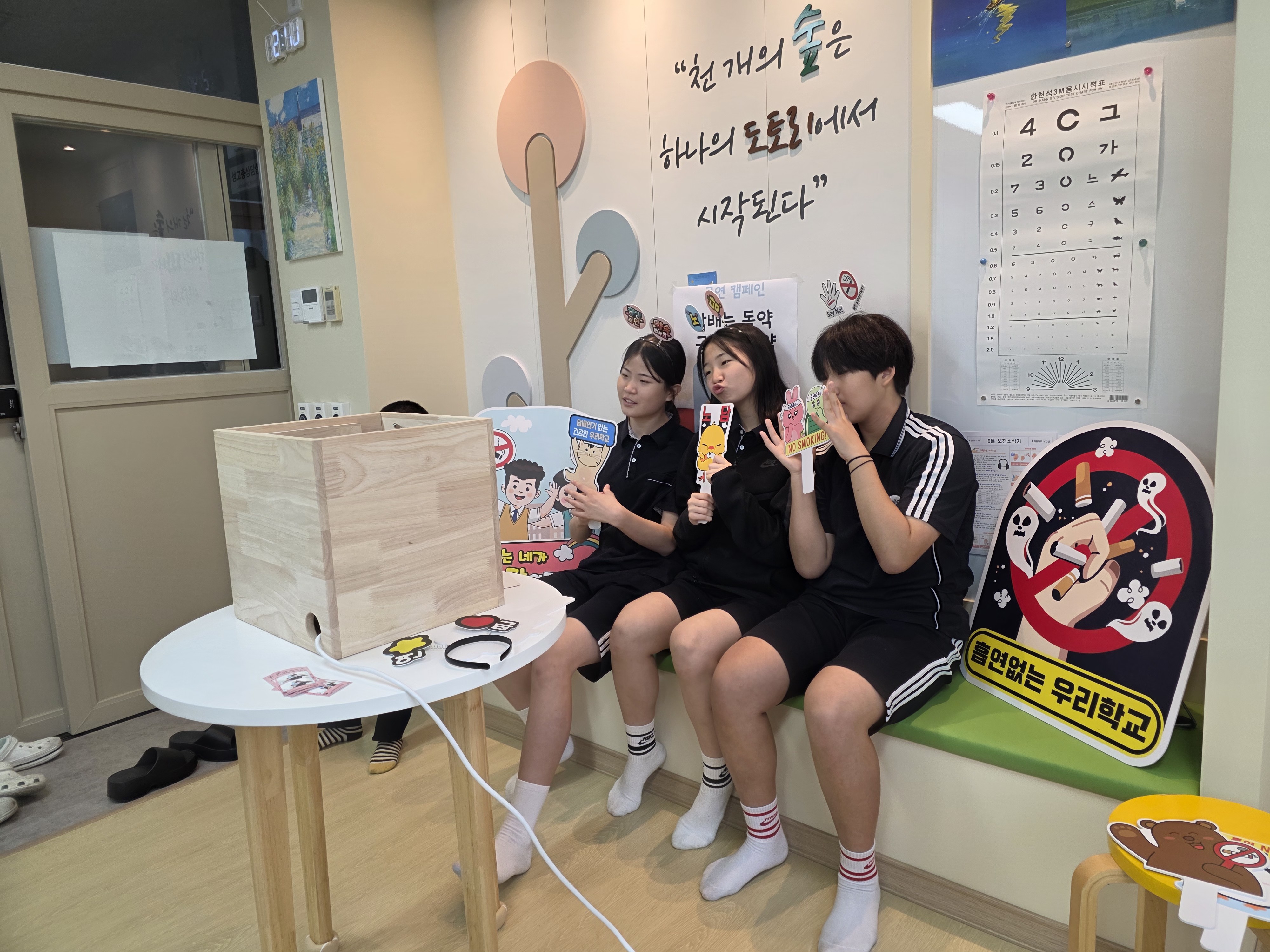 학생들은 교과와 연계한 시간을 통해 수업에서는 배울 수 없는 손씻기 뷰박스 체험, 정신건강 스트레스 지수 측정하기, 폐활량 및 일산화탄소 측정, 비만조끼 입어 보기, 컬링 게임 등의 체험을 실시하였다. 또한, 보건실에서는 금연 포토부스를 열어 컬러 금연 2컷 사진을 금연 머리띠를 하고 금연 피켓을 들고 촬영하여 학생들에게 큰 호흥을 얻었다.
