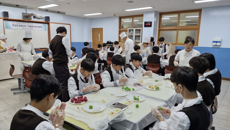 □ 안동중학교(교장 김영진)는 10월 13일 1학년 학생들을 대상으로 안동시 교육발전특구 시범사업 K-전통인문교육 시범운영 학교로 찾아가는 ‘전통음식의 인문학’체험을 안동 전통음식 전수기관 예미정과 함께 실시하였다.