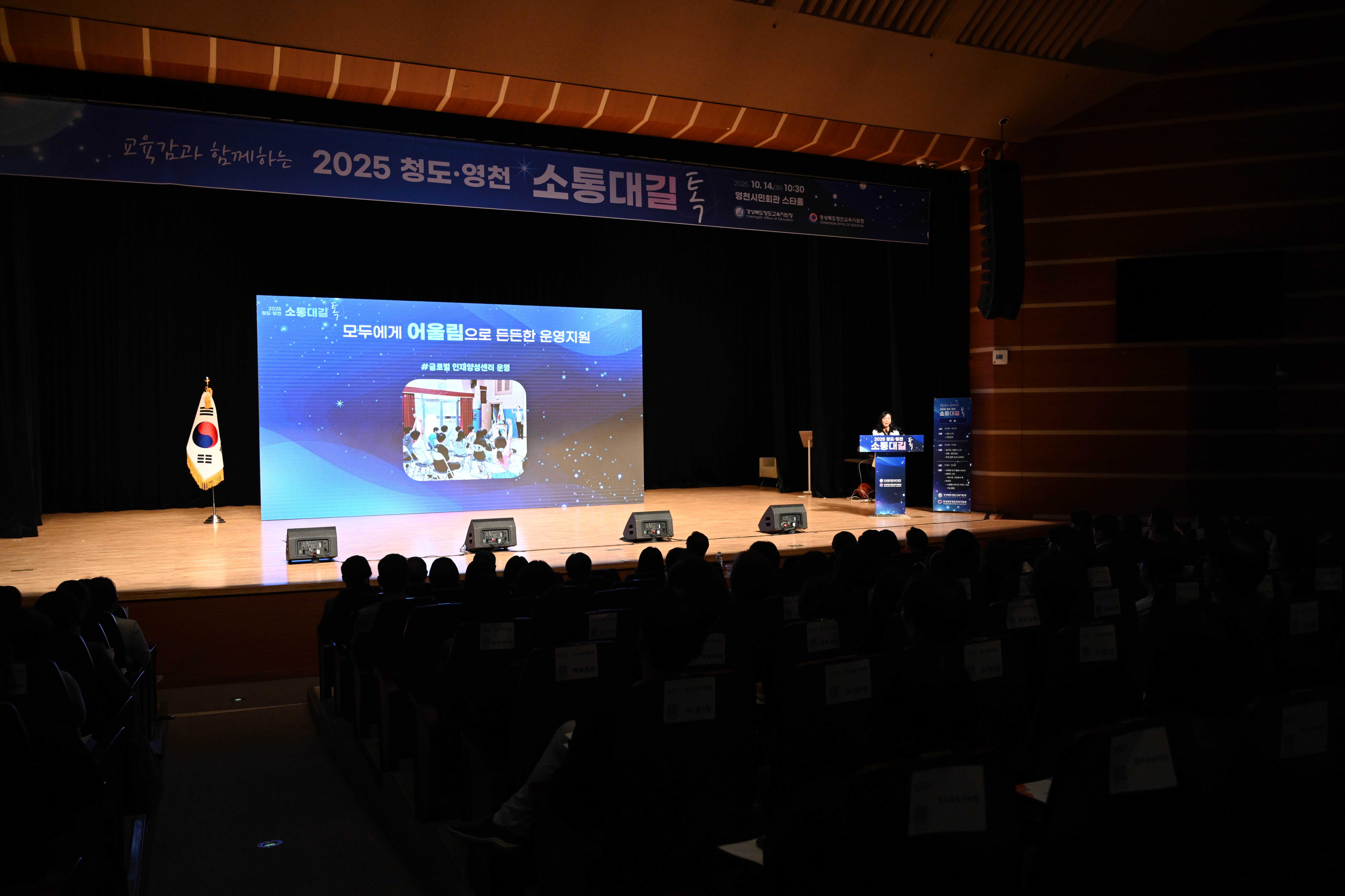 □ 경상북도영천교육지원청(교육장 신봉자)은 지난 10월 14일(화) 영천시민회관에서 ‘2025 청도·영천교육 소통대길톡’을 개최하여 청도·영천 교육가족과의 소통과 공감의 시간을 마련하였다.