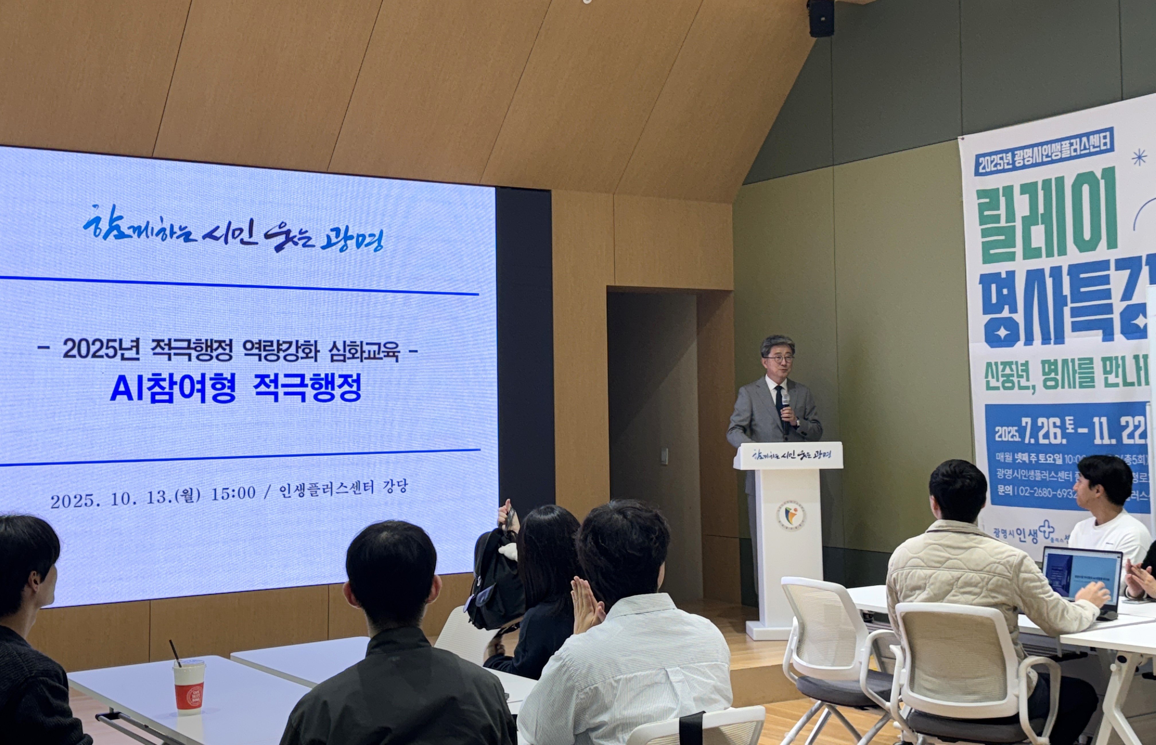 [금요저널] 광명시(시장 박승원)는 지난 13일 인생플러스센터 강당에서 ‘인공지능(AI) 참여형 적극행정’을 주제로 적극행정 역량강화 심화교육을 실시했다.