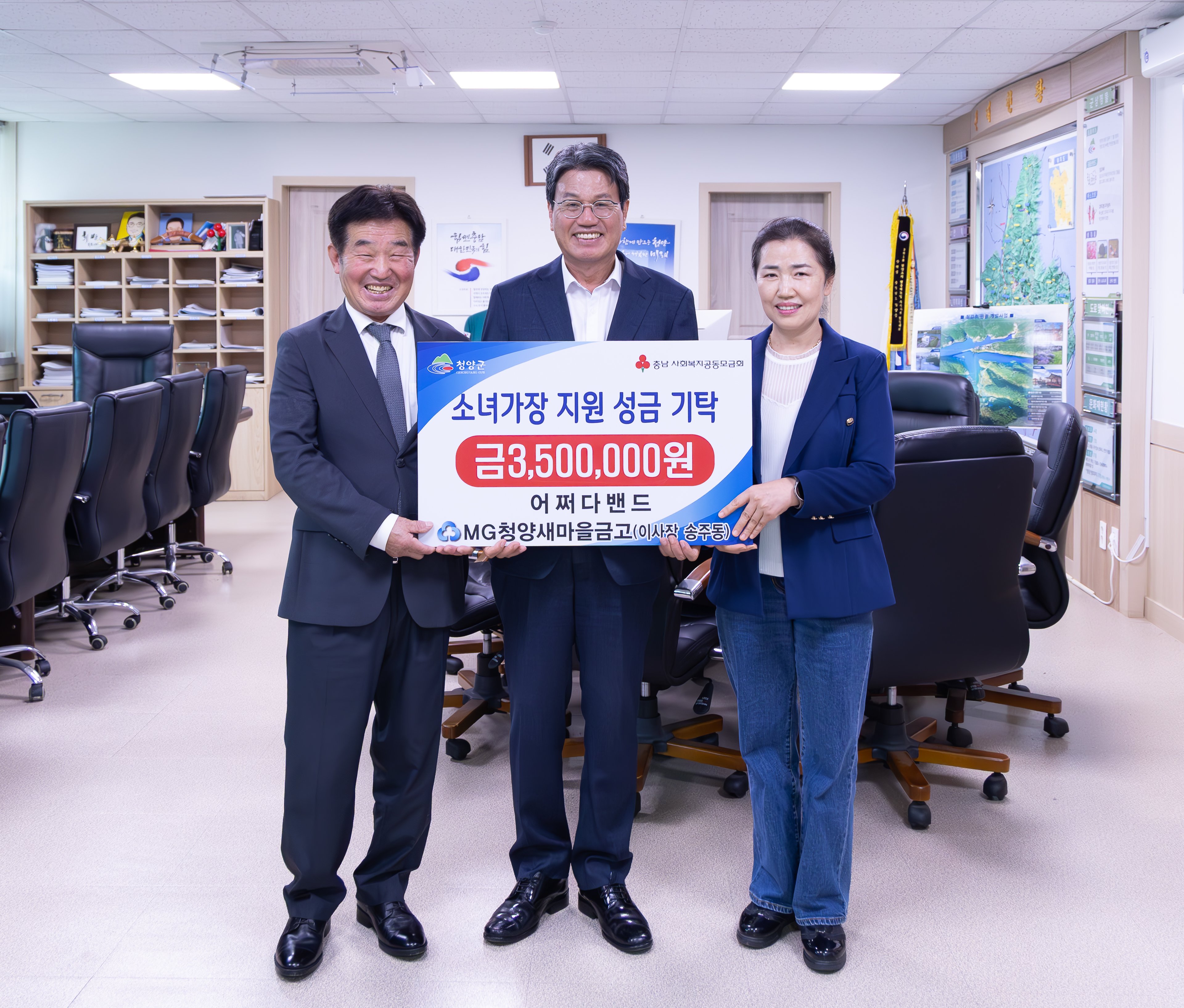 이번 기탁식은 14일 청양군청에서 열렸으며 어쩌다밴드 최순우 회장과 MG청양새마을금고 송주동 이사장 및 관계자들이 참석해 지역사회 나눔의 의미를 함께 나눴다.