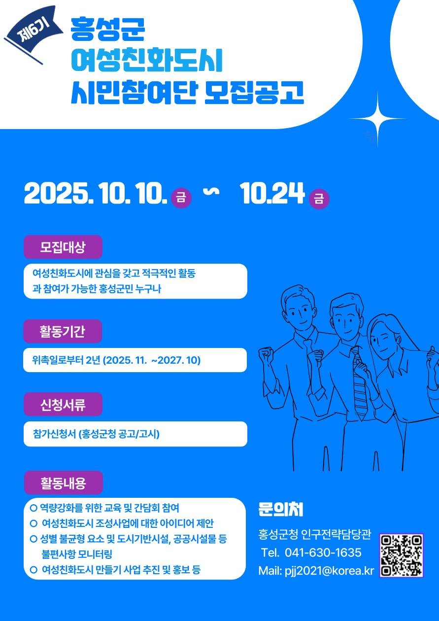 홍성군은 이번 시민참여단 모집을 통해 여성친화도시로서의 비전을 구체화하고 군민 참여를 기반으로 한 실질적인 변화와 발전을 도모할 계획이다.