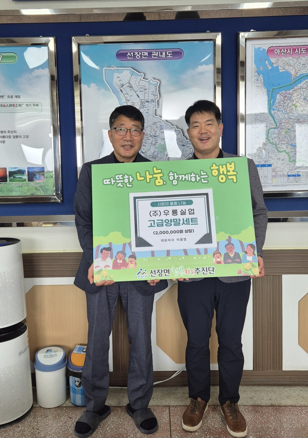 아산시 선장면 행복키움추진단, (주)우룡실업으로부터 후원 물품 전달받아 (사진제공=아산시)