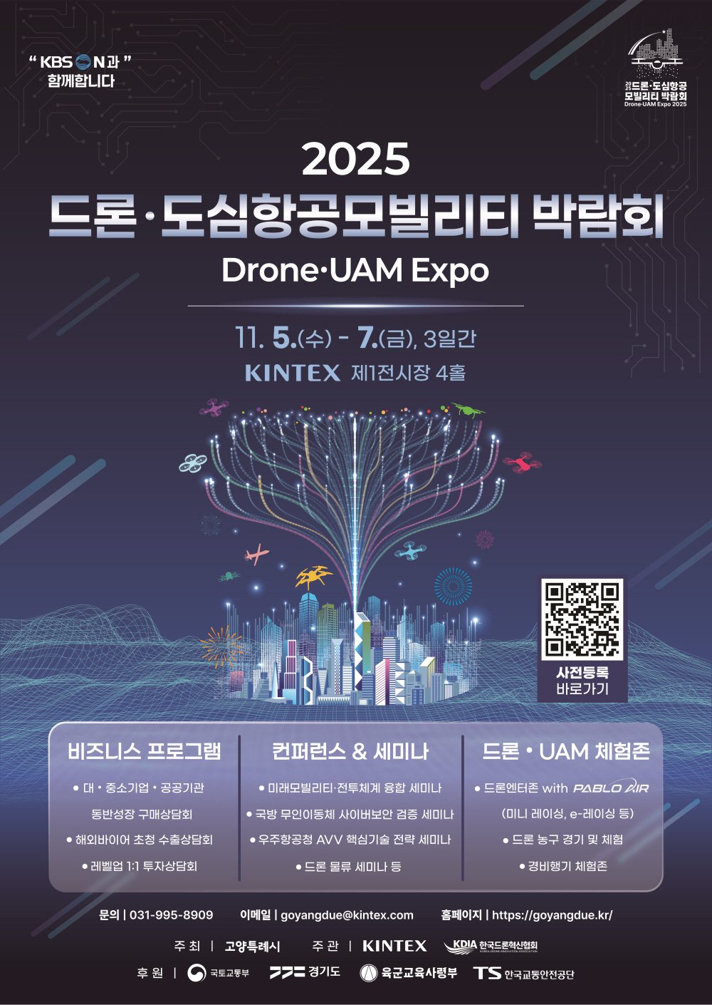 [금요저널] 고양특례시(시장 이동환)는 오는 11월 5일부터 7일까지 킨텍스 제1전시장에서 열리는 ‘2025 드론- 도심항공모빌리티 박람회’에서 산업 전문가들과 함께 드론- UAM 산업의 발전 방향과 최신 기술 동향을 논의하는 전문 컨퍼런스를 개최한다고 밝혔다.