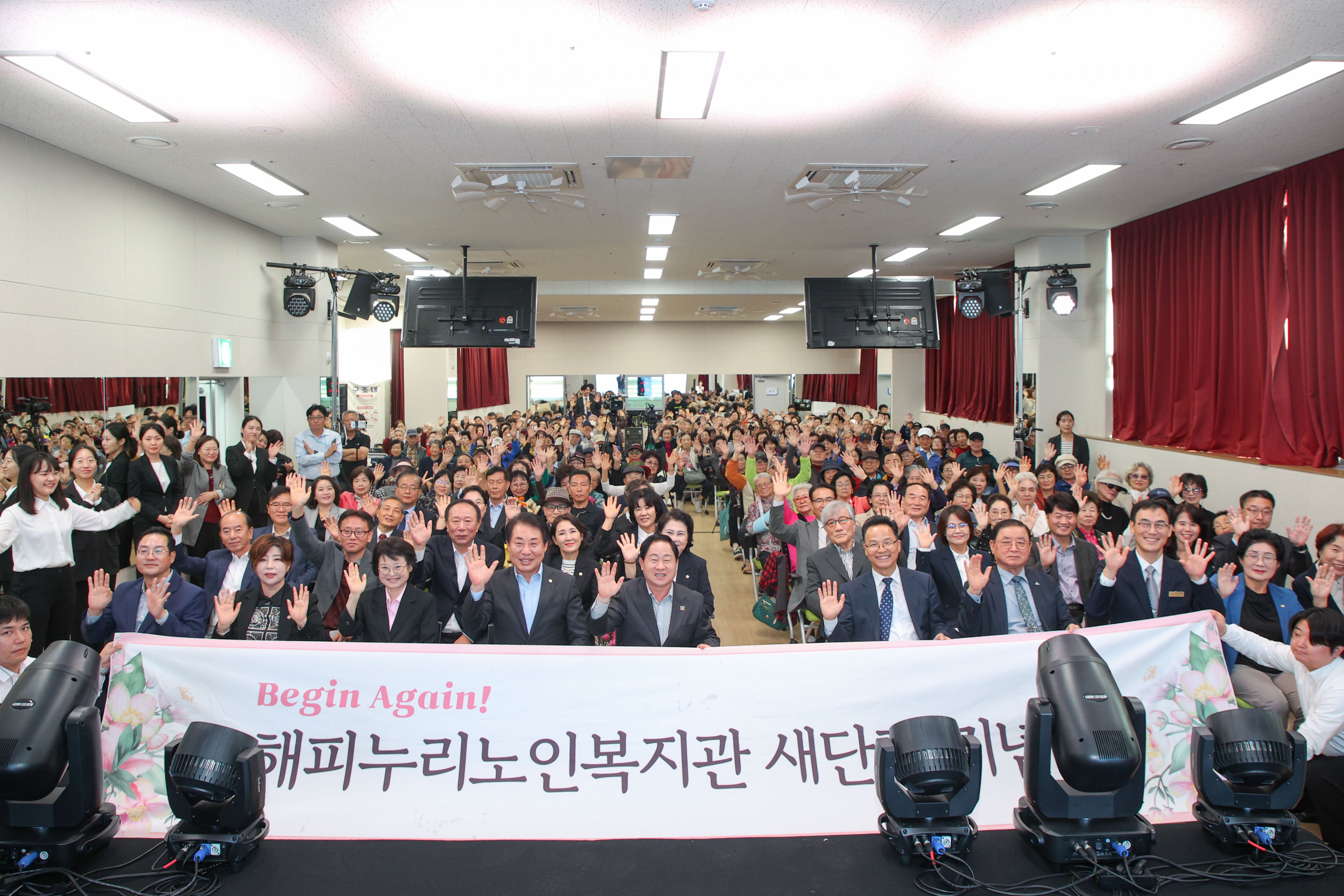 이번 기념식은 지역 어르신들의 여가- 복지 서비스 향상과 쾌적한 복지 환경 조성을 위해 추진된 해피누리노인복지관 증- 개축 공사의 완공을 축하하기 위해 마련됐다.