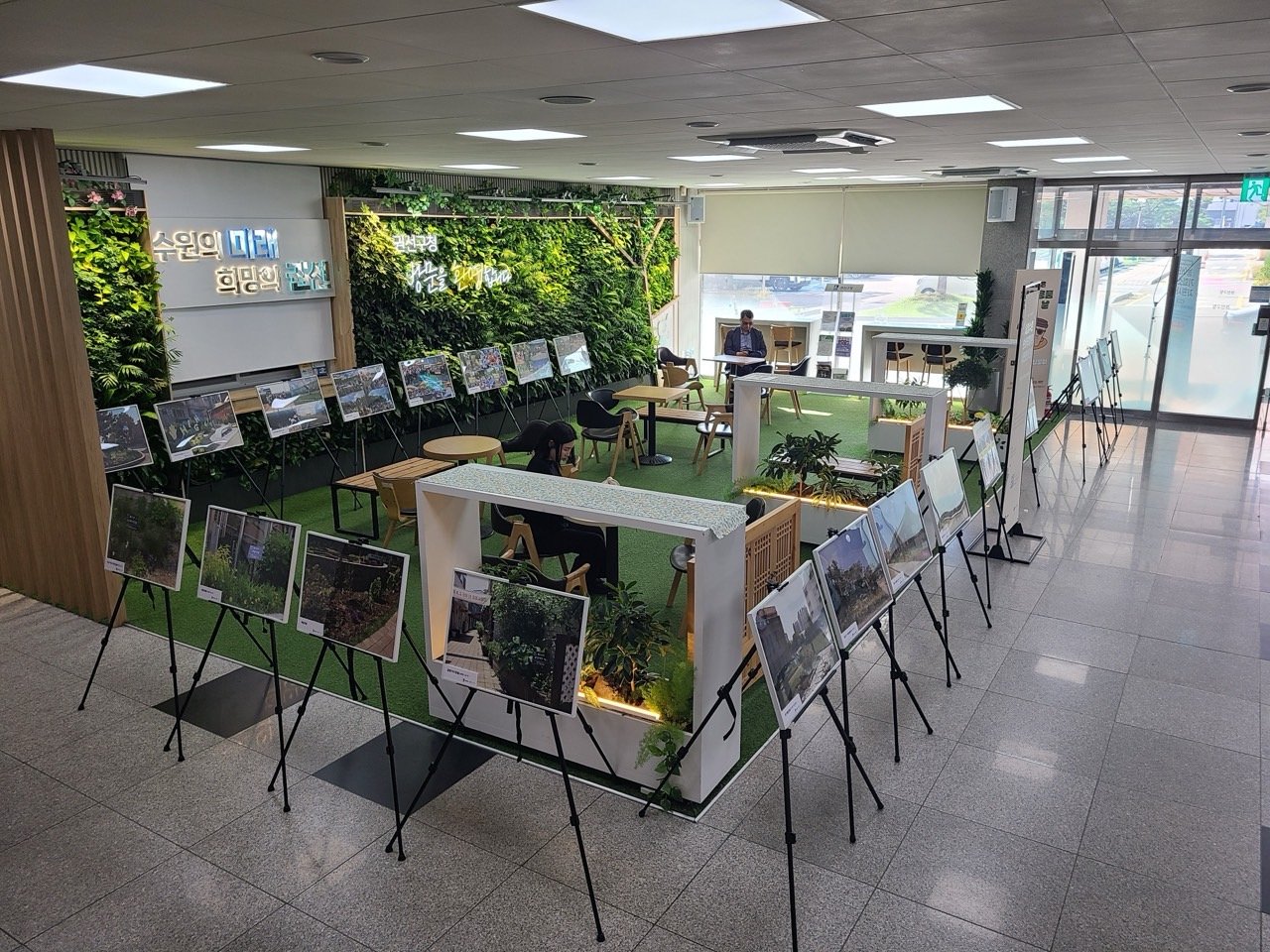 권선구청에서 새빛수원 손바닥정원 사진전시회가 열리고 있다.