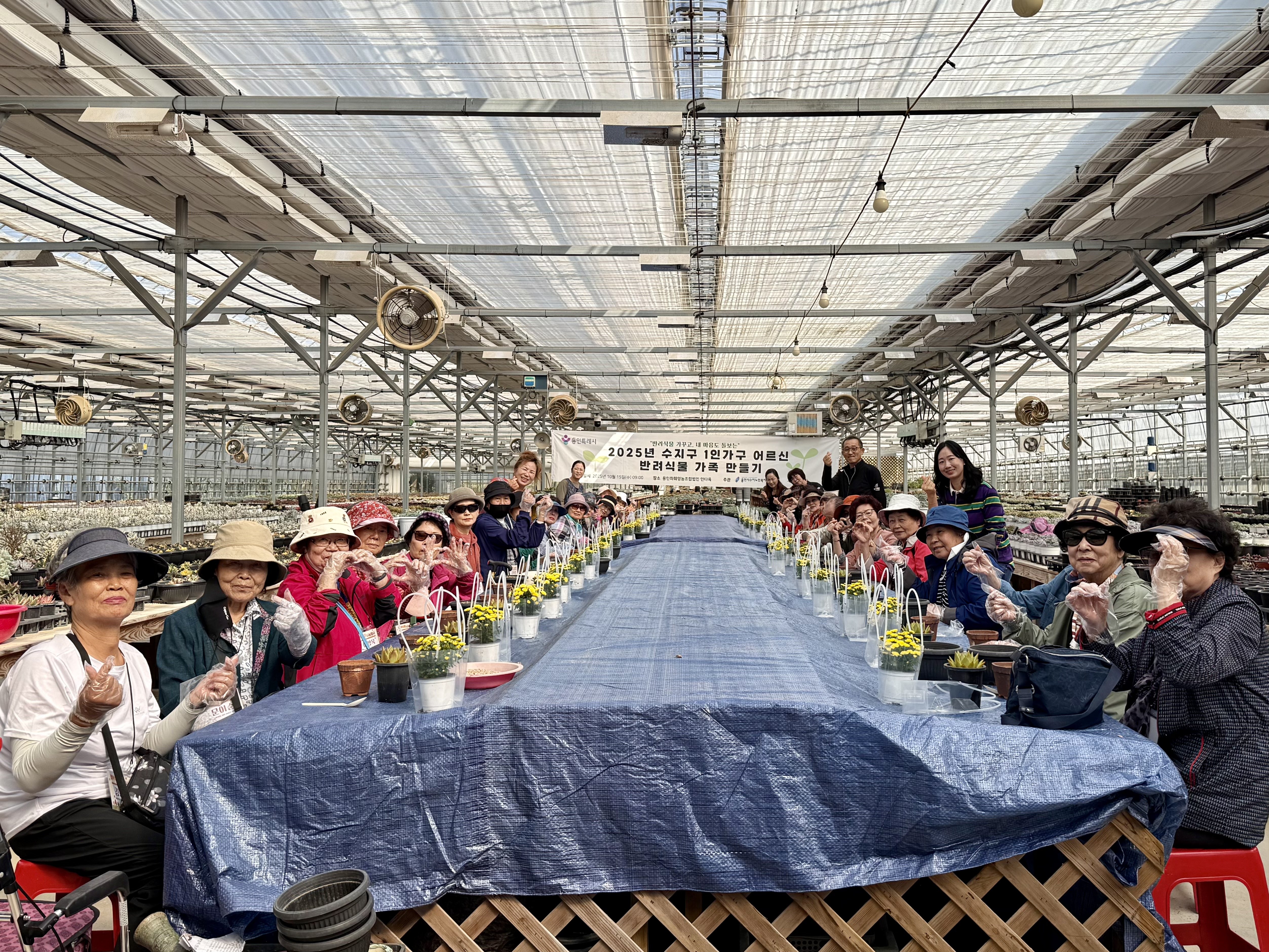 [금요저널] 용인특례시(시장 이상일) 수지구는 10월 경로의 달을 맞아 15일 65세 이상 홀로 어르신 40여명을 대상으로 이동읍 화훼단지에서 반려식물 식재 체험과 가을 나들이 행사를 진행했다고 16일 밝혔다.