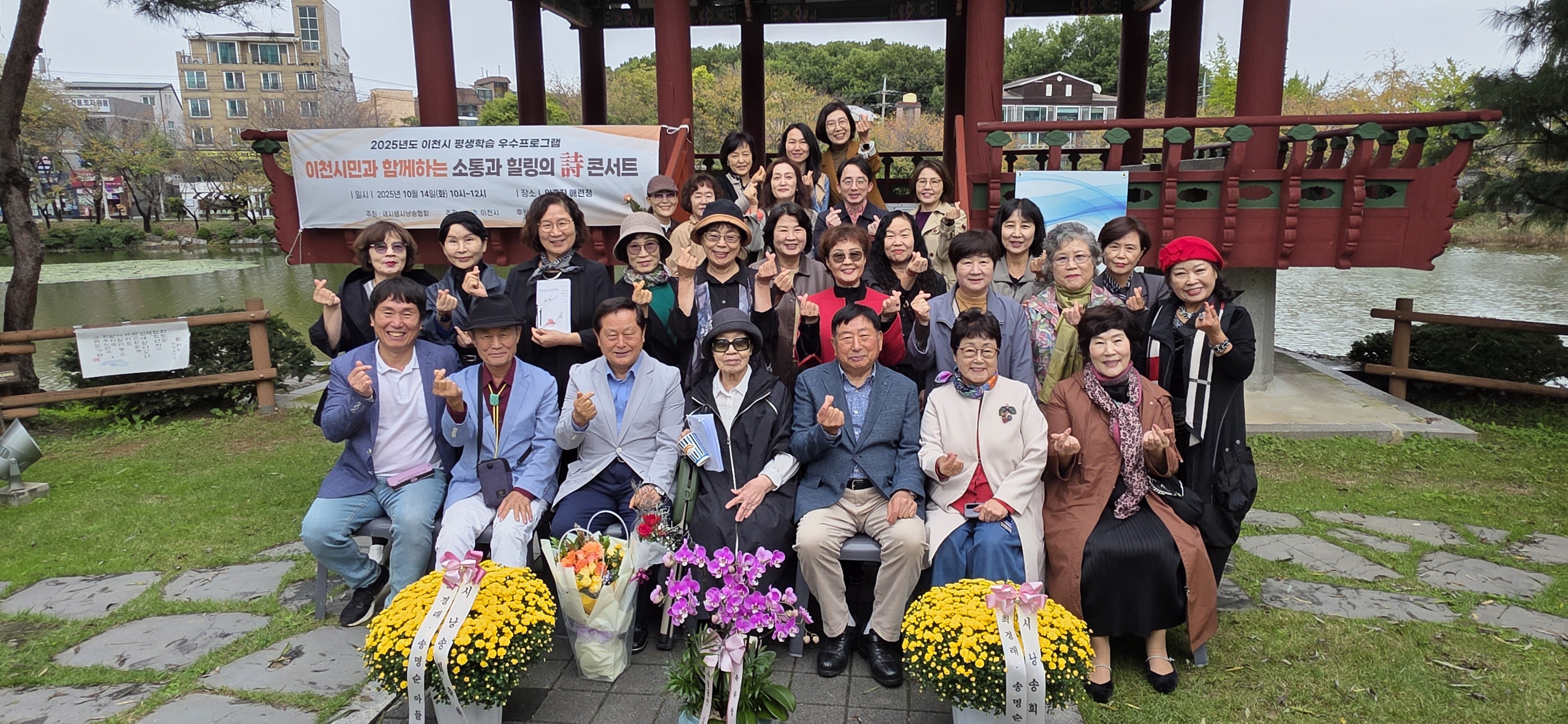 이번 행사는 2025년 이천시 평생학습 우수프로그램으로 선정되어 지난 7월부터 9월까지 총 12회에 걸쳐 이루어진 ‘소통과 힐링의 시 창작 교실’의 창작물을 모아 ‘같은 쪽 바라보는 우리’라는 공동시집의 발간기념 행사를 겸한 지역민을 위한 축제였다.