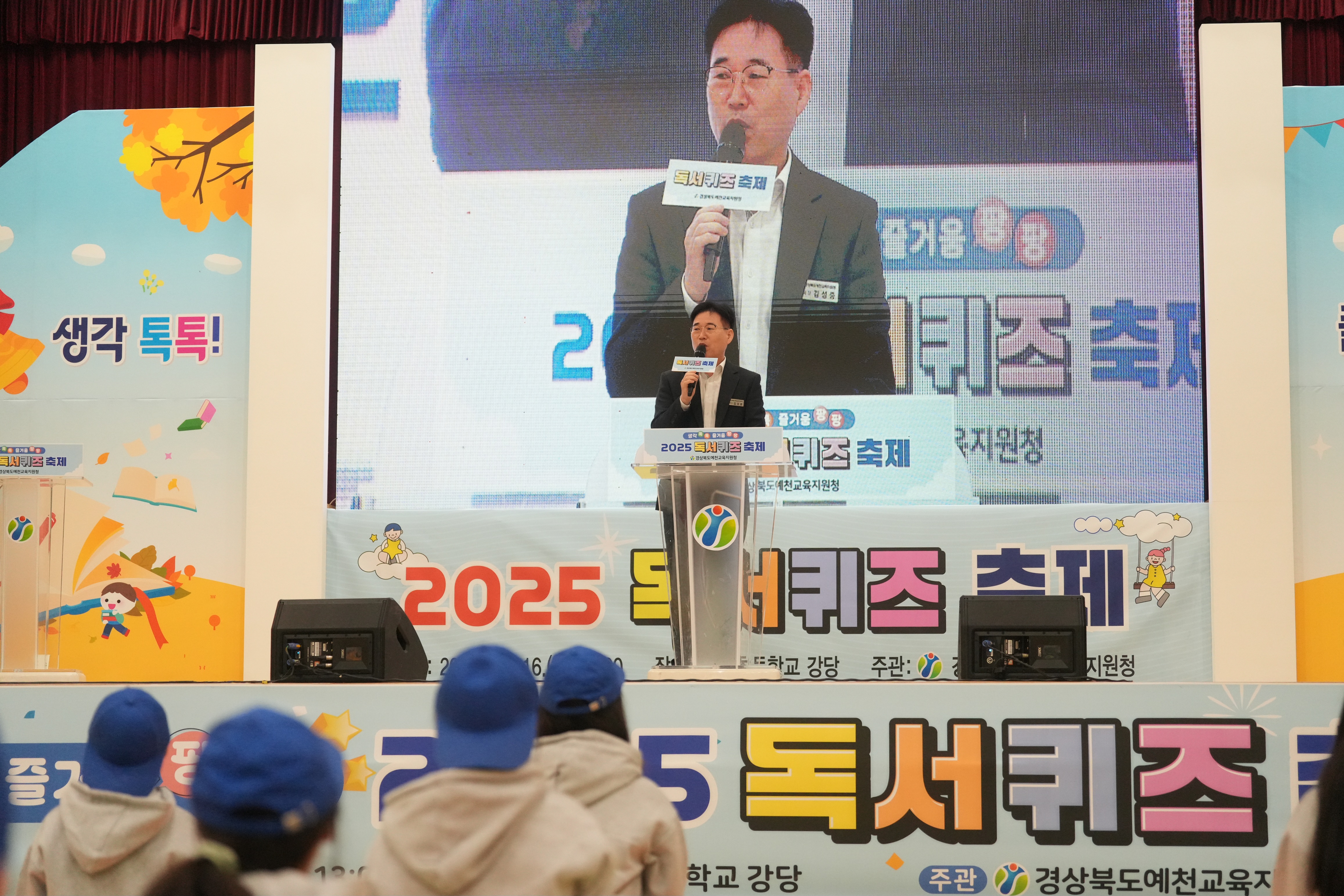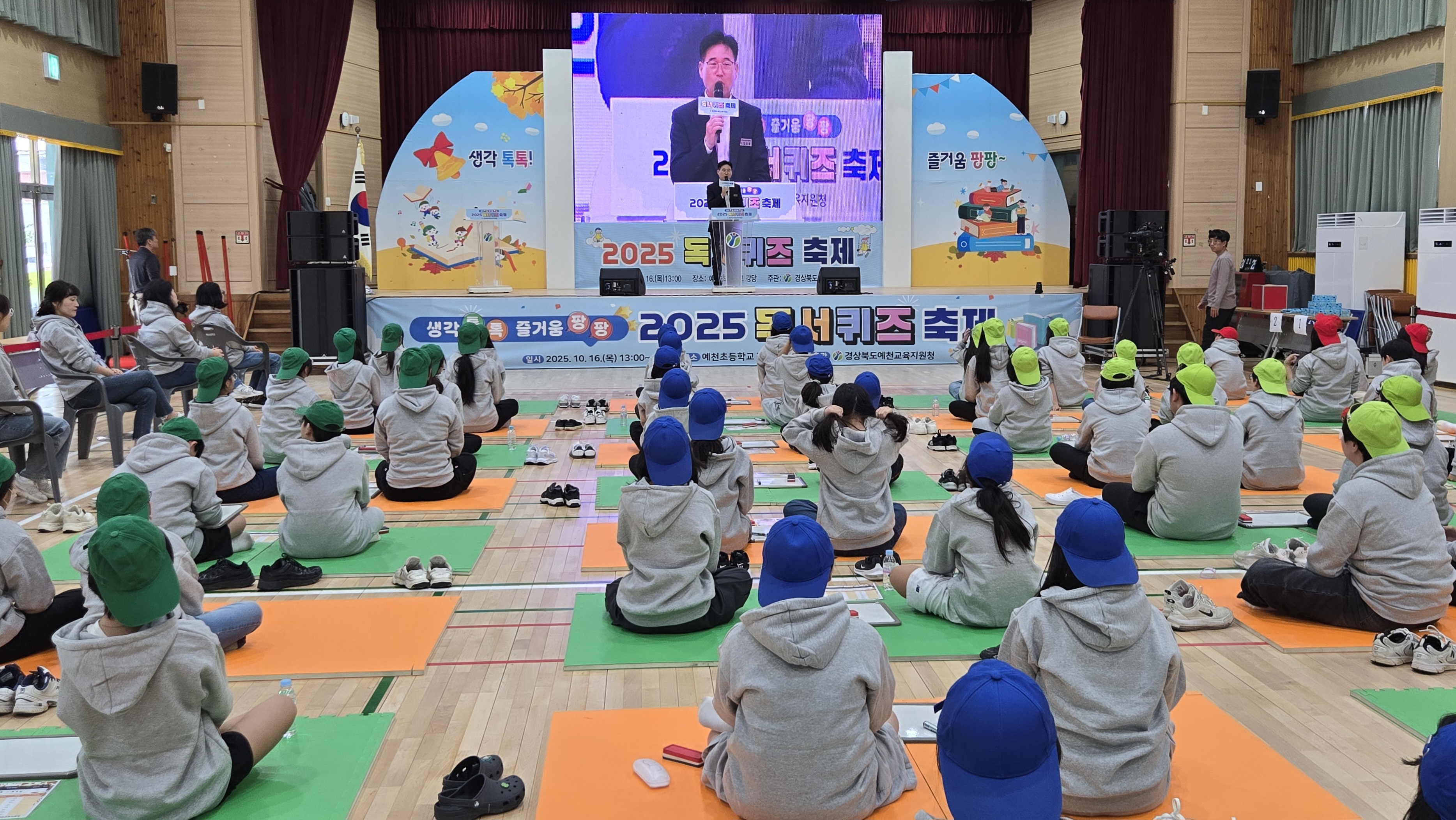 경상북도예천교육지원청(교육장 김성중)은 10월 16일(목) 예천초등학교 강당에서 관내 초, 중학생 64명이 참가한 가운데 「2025학년도 독서 퀴즈 축제」를 개최하였다.
