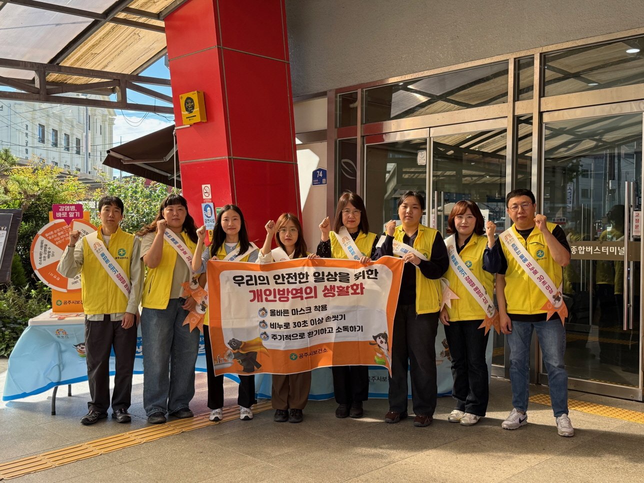 [금요저널] 공주시(시장 최원철)는 지난 15일 공주종합버스터미널 일원에서 시민과 이용객을 대상으로 개인위생 수준 향상을 위한 감염병 예방 캠페인을 실시했다고 밝혔다.