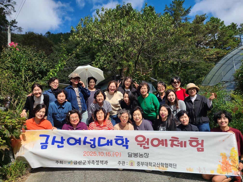 [금요저널] 금산여성대학은 지난 15일 남이면 달봉농장에서 원예 체험 프로그램을 진행했다.