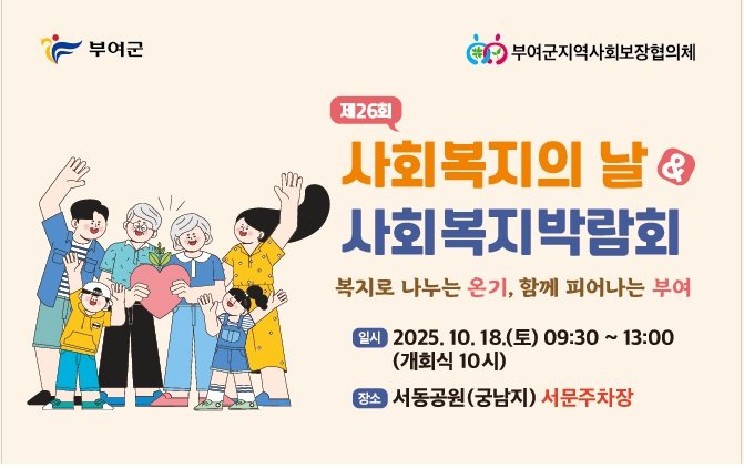 [금요저널] 부여군(군수 박정현)은 오는 10월 18일(토) 서동공원 서문주차장에서 ‘제26회 사회복지의 날 및 사회복지박람회’를 개최한다고 밝혔다.