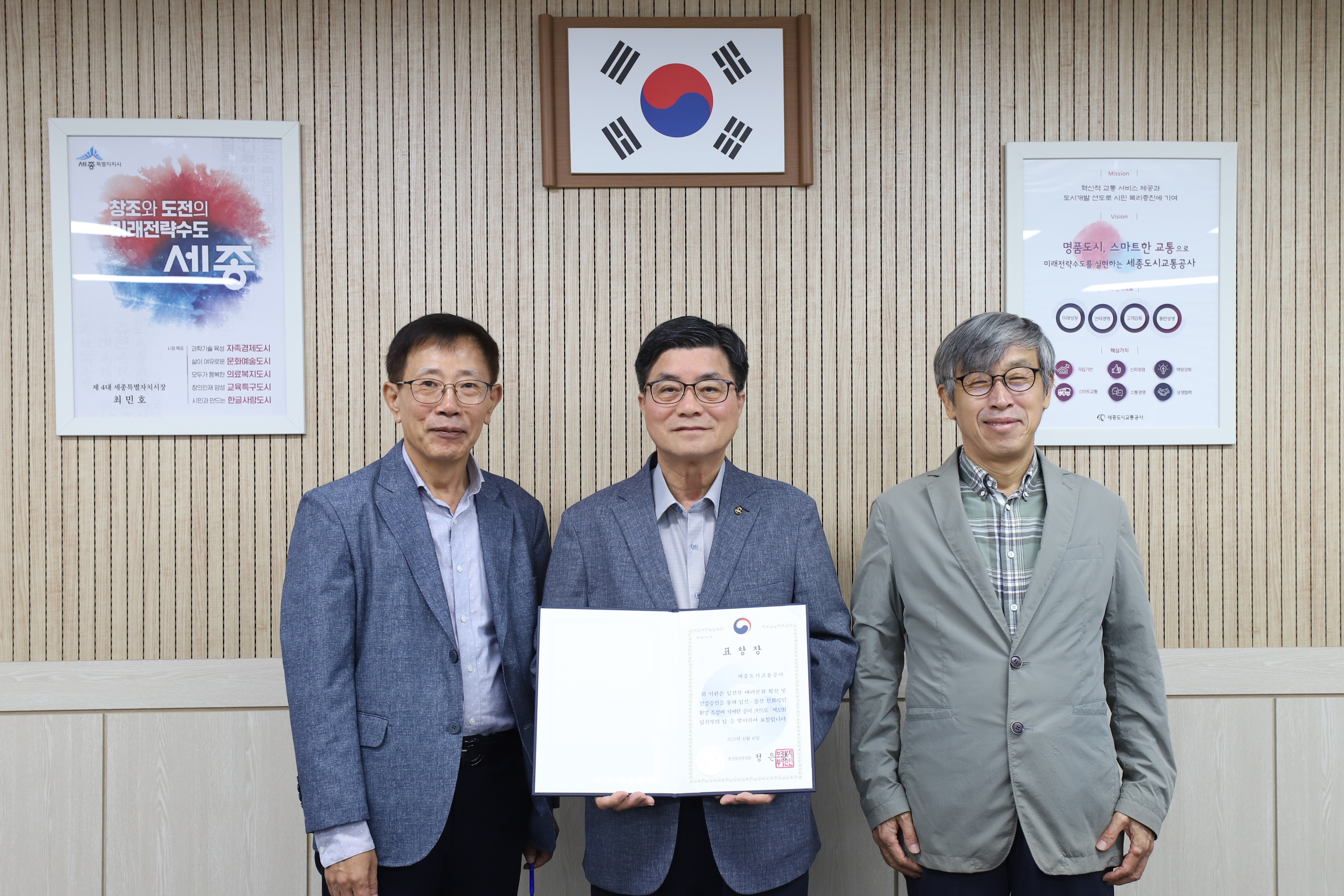 [금요저널] 세종도시교통공사(사장 도순구)는 보건복지부 주관 제20회 ‘임산부의 날’을 맞아 임산부와 육아 가구를 위한 가족친화적 근무환경 조성과 교통복지 향상에 기여한 공로로 보건복지부 장관 표창을 수상했다.