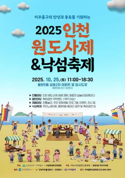 한편 인천 원도사제는 미추홀구가 주최하고 미추홀학산문화원이 주관하며 낙섬축제는 낙섬축제추진위원회가 주최, 용현5동 주민자치회가 주관, 용현5동 행정복지센터가 협력해 추진된다.