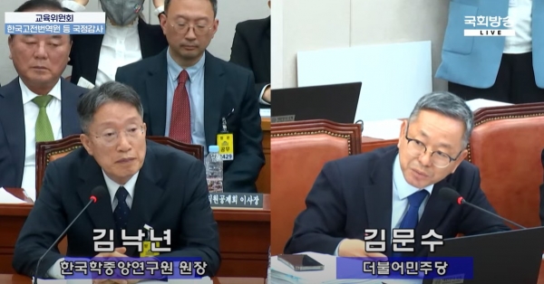 [금요저널] 국회 교육위원회 국정감사에서 더불어민주당 김문수 의원이 한국학중앙연구원 김낙년 원장을 상대로 “이승만은 여순사건 학살자”고 직격했다.